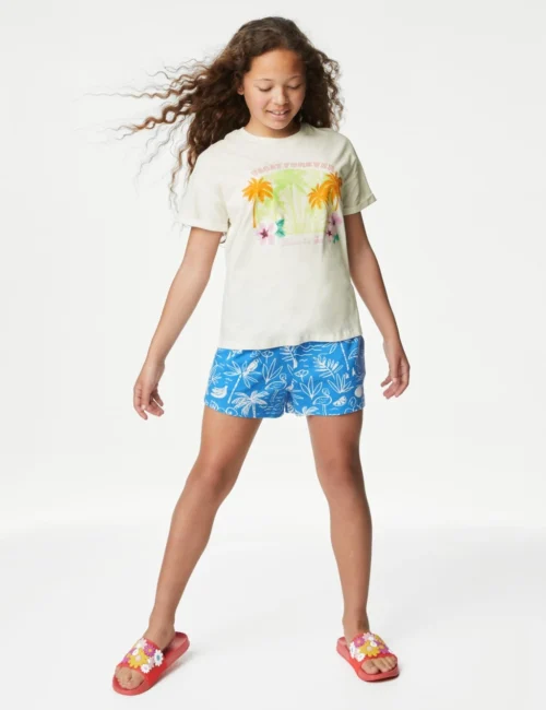Pure Cotton Tropical Print Shorts (6-16 Yrs)