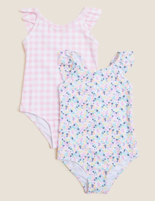 2pk Ditsy And Gingham Swimsuits (2-7 Yrs)