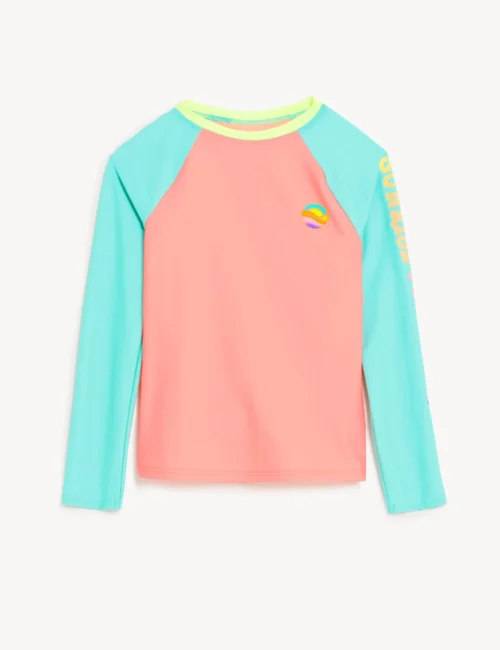 Colour Block Long Sleeve Rash Vest (6-16 Yrs)