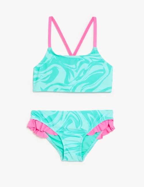 2pk Striped & Floral Swimsuits (2-8 Yrs)
