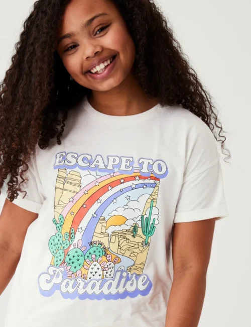 Pure Cotton Palm Graphic T-Shirt (6-16 Yrs)