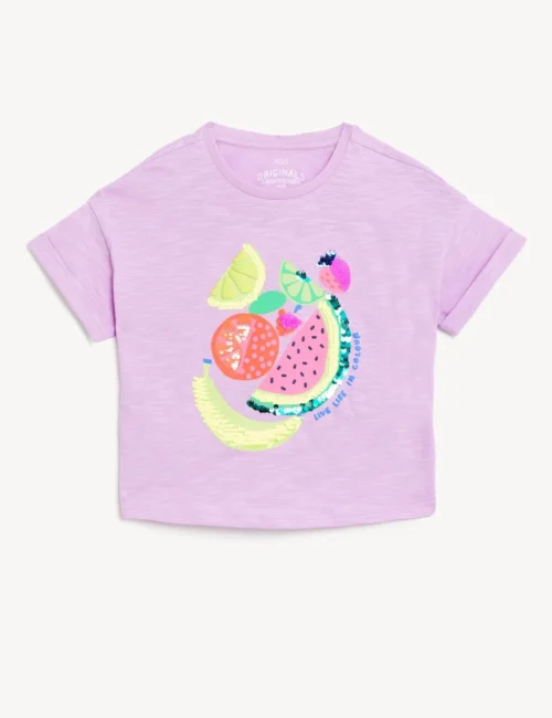 Pure Cotton Sequin Fruit T-Shirt (2 – 8 Yrs)