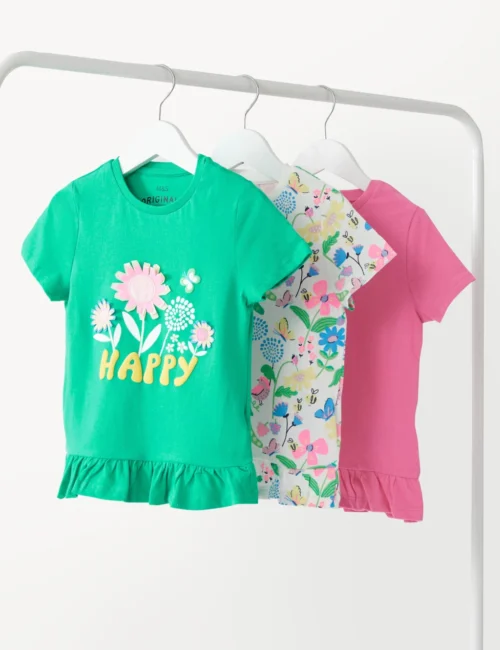 3pk Pure Cotton Floral T-Shirts (2-8 Yrs)