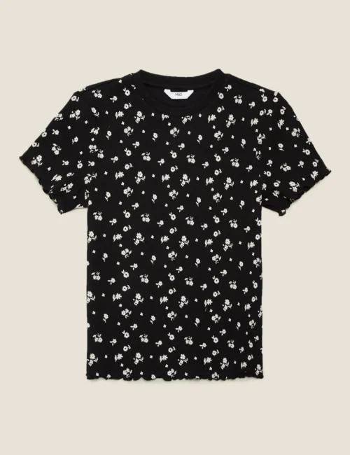 Cotton Rich Floral Print Ribbed T-shirt (6-16 Yrs)