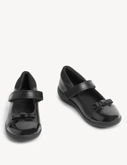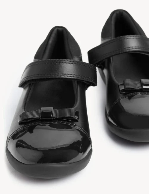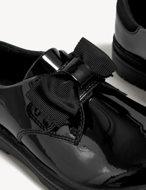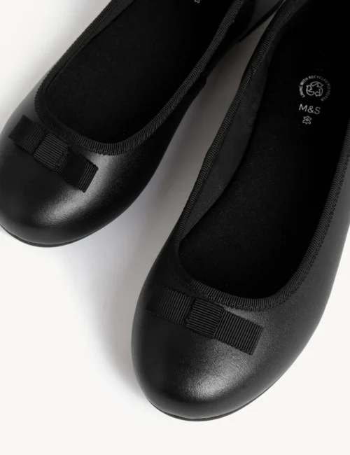 Kids’ Leather Ballerina Bow School Shoes (13 Smal L- 7 Large)