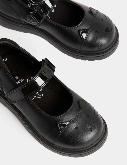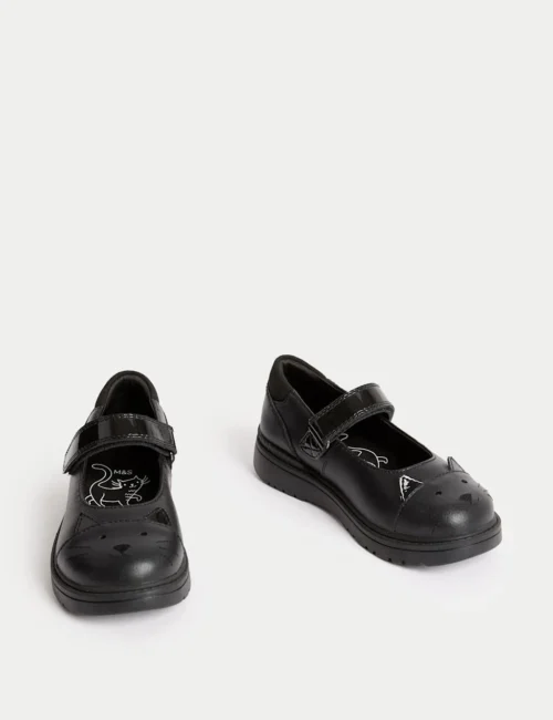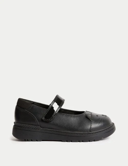 Kids’ Leather Mary Jane Cat School Shoes (8 Small – 1 Large)