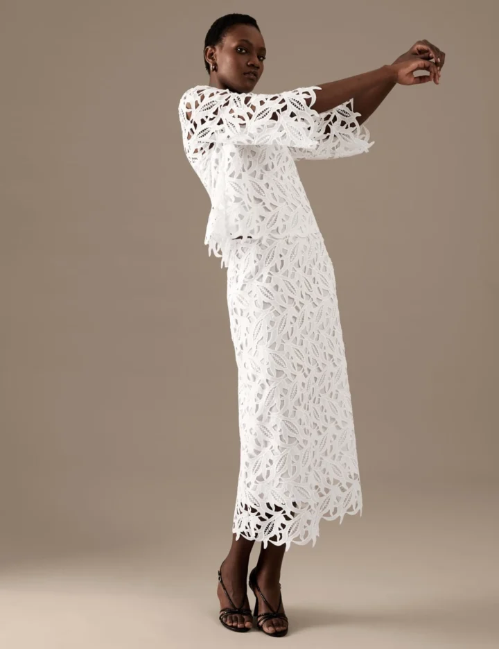 Create an effortlessly elegant outfit with this A-line skirt from our Autograph collection. It’s cut in a regular fit and features a flattering midaxi length. The striking lace design is lined to ensure your comfort, and there’s a zip at the back for a neat finish. Autograph: premium investment pieces featuring contemporary cuts and refined finishing touches.