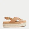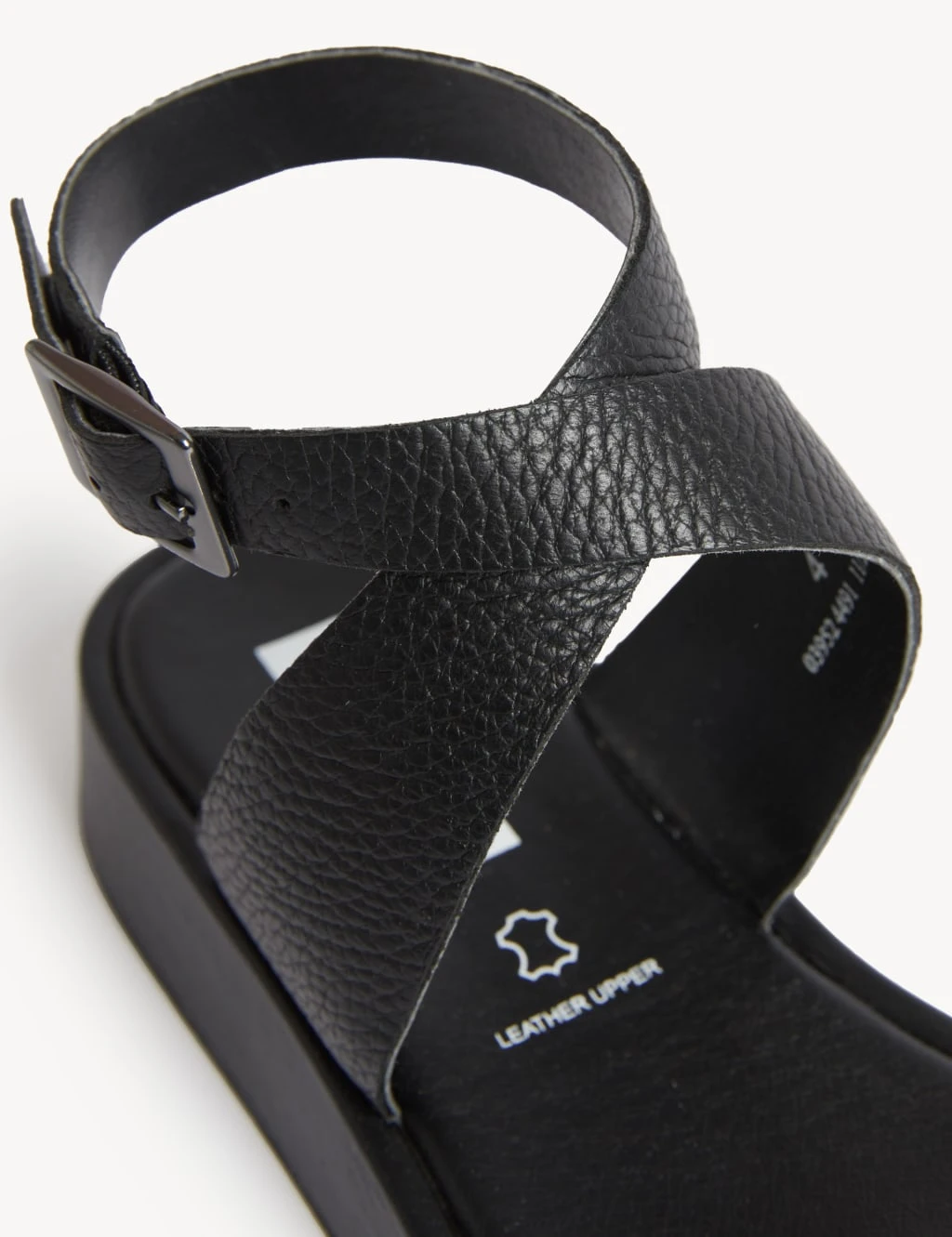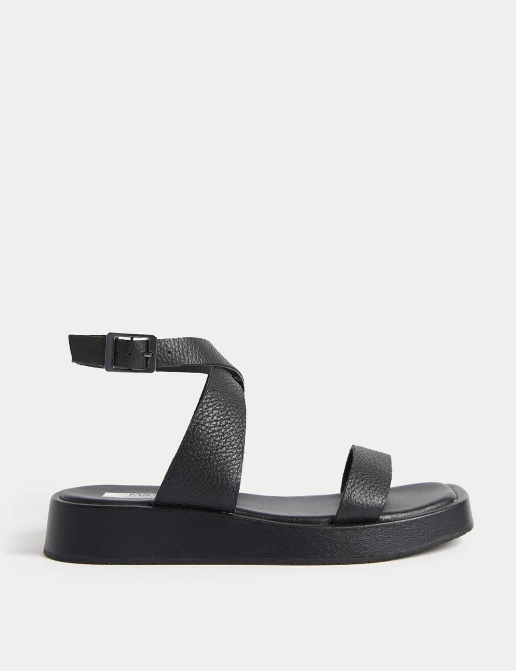 Channel understated chic when you slip on these minimalist leather sandals. They sit on a flatform sole for a subtle yet comfortable lift. The back strap wraps around the ankle and fastens with a buckle, giving a secure fit. Antibacterial padding helps keep them fresh.