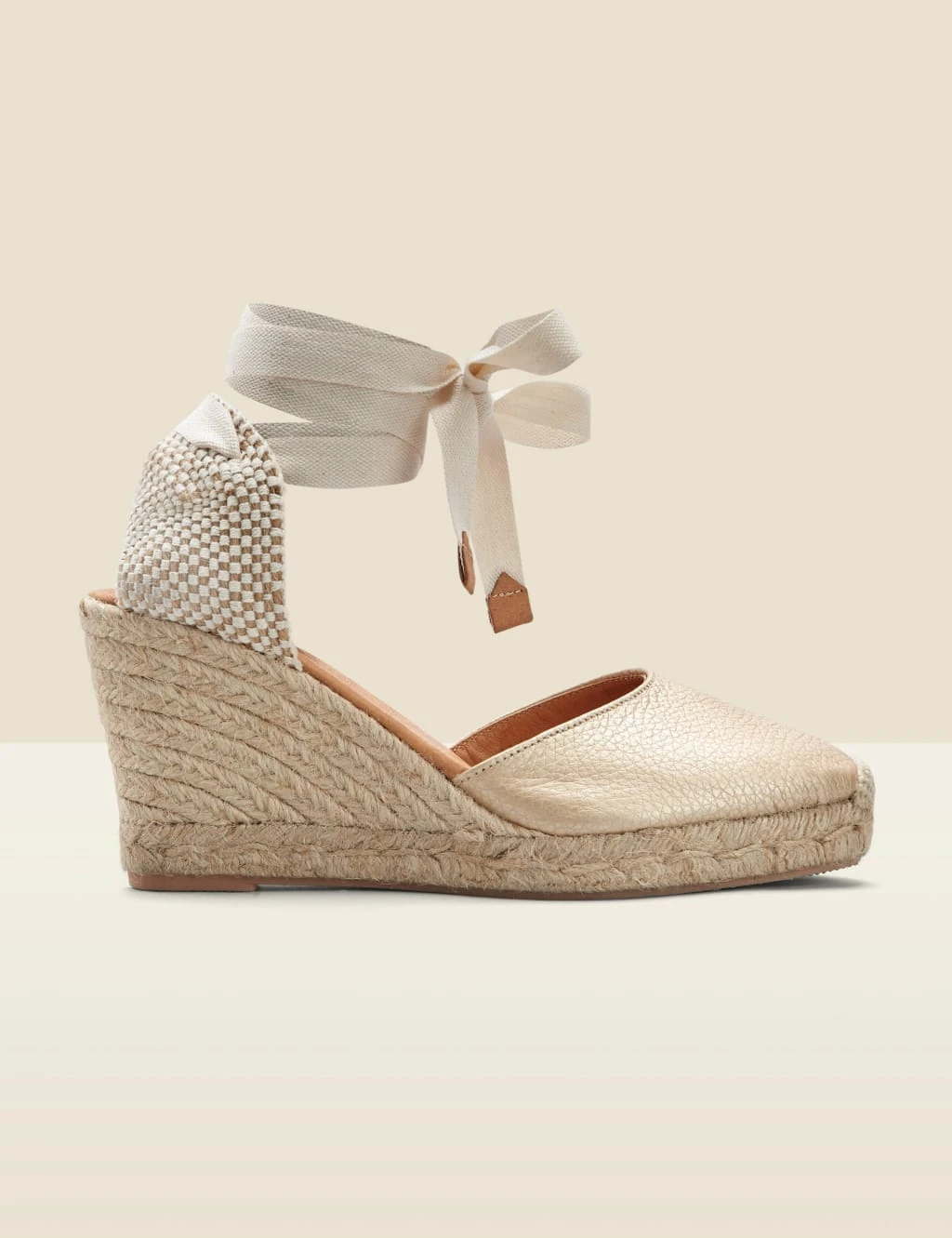 When summery weather arrives, these Sosandar espadrilles are ready to go. They’re crafted with a mid-height wedge heel for an elegant profile and feature a ribbon ankle tie for a statement look. The uppers are made from supple leather to offer all-day comfort, while adding a luxe finish.