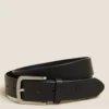 Complete smart ensembles with this slim leather belt. Featuring a rectangular silver-tone buckle and two keepers.