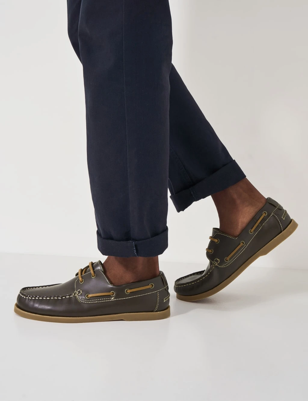 Bring an elevated air to casual outfits with these leather boat shoes from Crew Clothing. Their lace-up fastenings give a flexible fit, while contrast stitching around the top adds traditional detail. The undersoles are non-slip for extra grip and the brand’s distinctive crossed oars logo is embossed on the inner sole for a premium finishing touch.