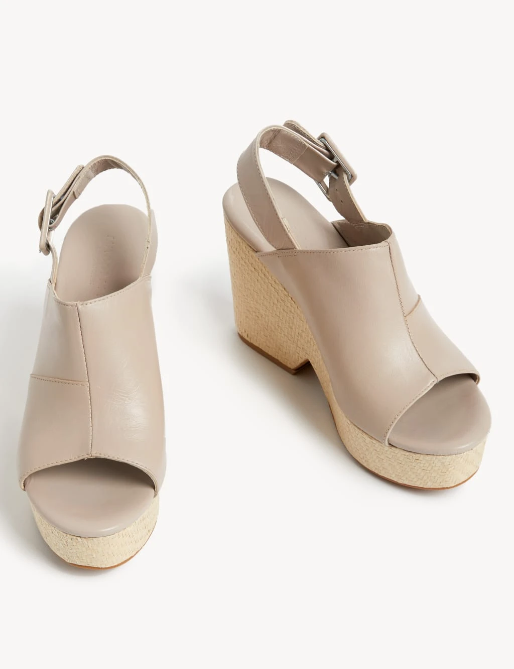 Step out in style in these platform leather sandals from our Autograph collection. They’re designed with a buckle-fastened ankle strap for easy wear. The raffia wedge sole creates a statement finish.