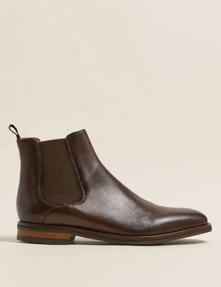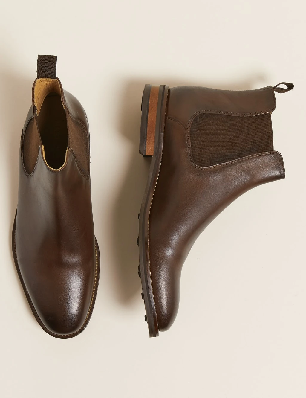 Pull on these classic men’s Chelsea boots to finish off an outfit with a cool and refined flair. Crafted from fine leather for a luxurious touch, our men’s boots have a burnished toe for authentic style and are a brilliant choice for elevating any look and can be worn with jeans, chinos and trousers for exceptional versatility. Designed with a contrasting heel for an interesting touch, this pair has also been fitted with sturdy Duraheel 50 for added durability.