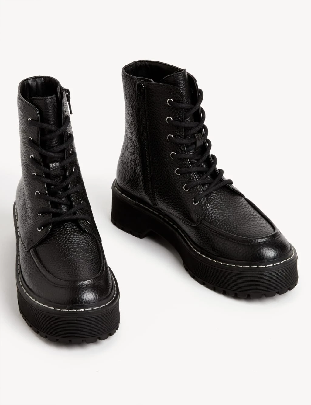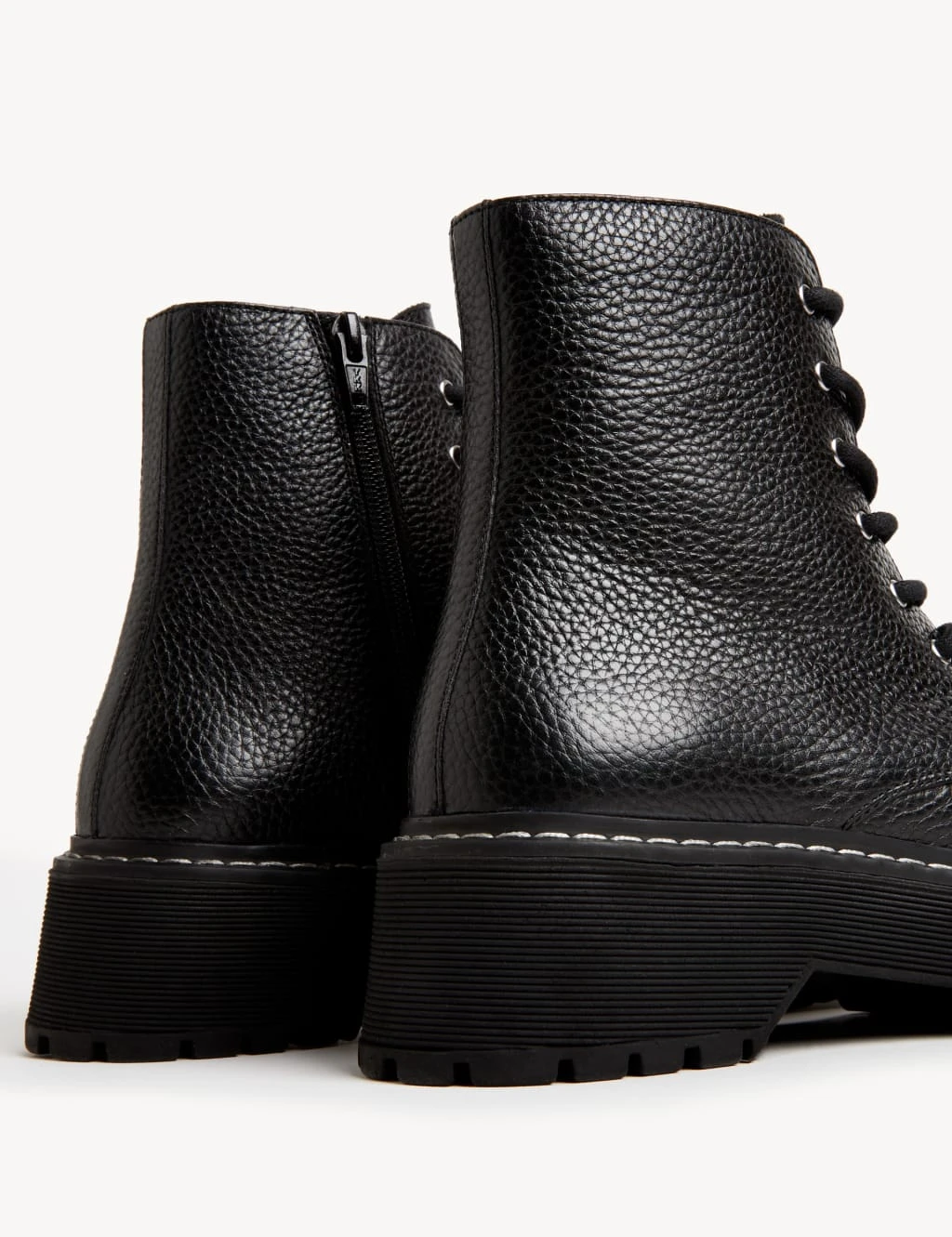 Finish your outfit in statement style with these leather boots. On-trend chunky design with a zip fastening and lace-up detail on the front. Stitching around the outsole adds a premium feel. Flatform heel features Insolia Flex® technology which provides comfort by making sure your foot is placed correctly and improves natural movement. Antibacterial padding offers all-day freshness.