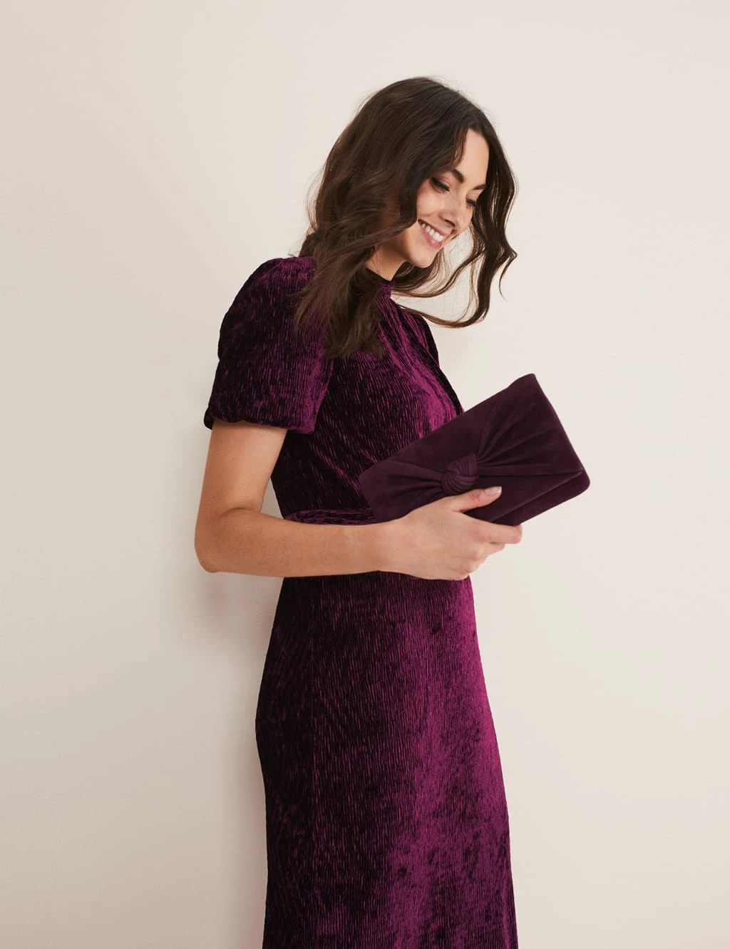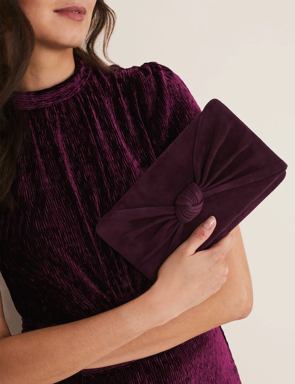 This classic leather clutch from Phase Eight will complete your occasionwear in sophisticated style. The front features an eye-catching knot detail for a statement feel. A magnet fastening helps to keep all of your belongings secure and safe.