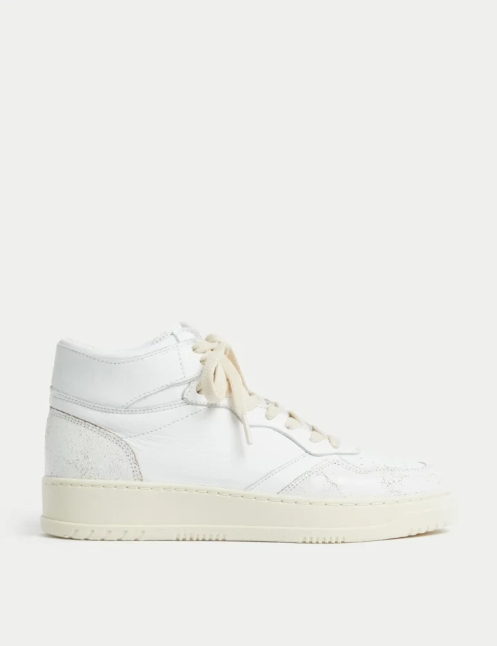 Leather Lace Up High Top Trainers