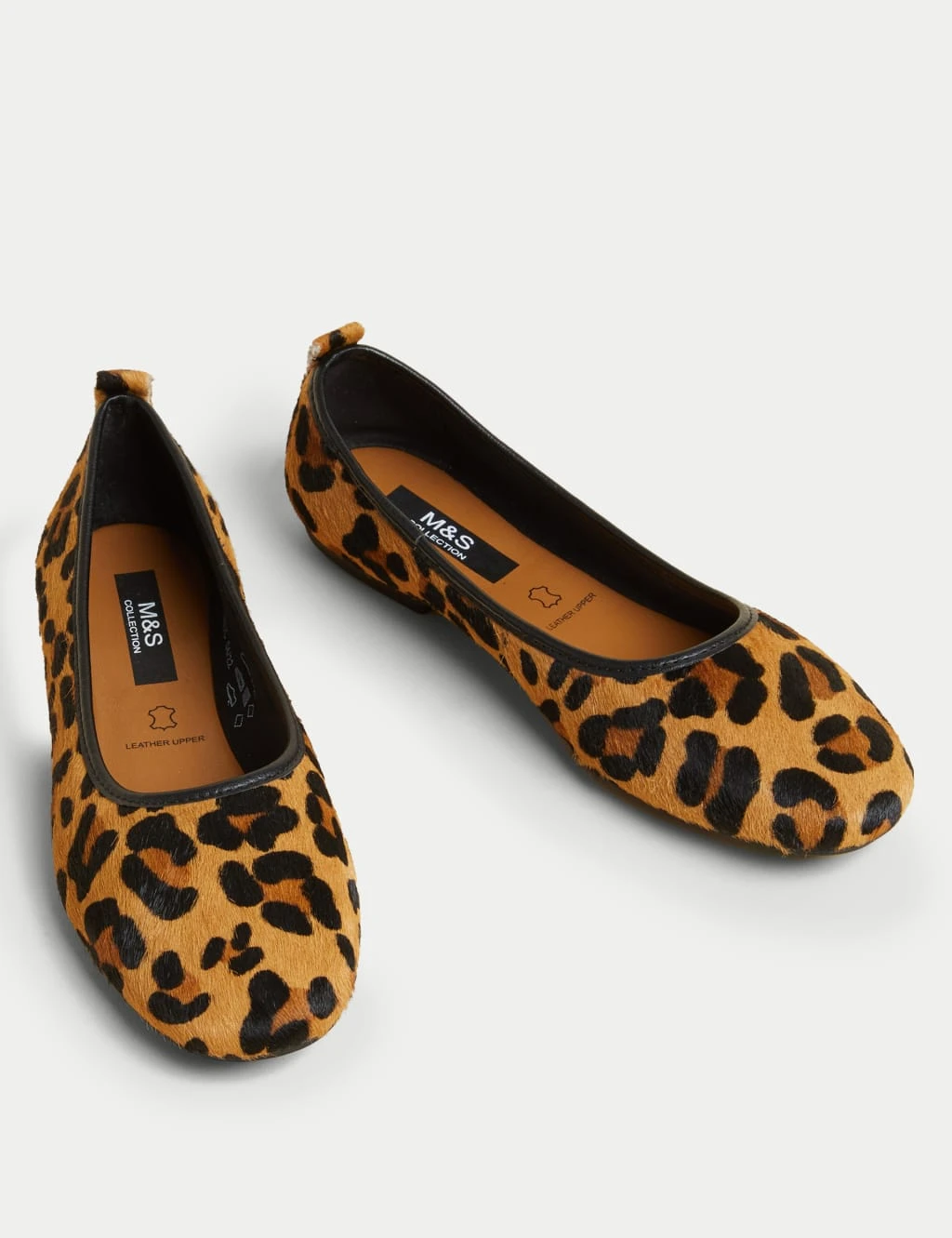 We’ve covered these super soft leather ballet pumps with a bold leopard print for a fun pop. They have an easy-to-wear flat heel with Insolia Flex® technology to support your feet while walking. Antibacterial padding offers freshness. Made with responsibly sourced leather.