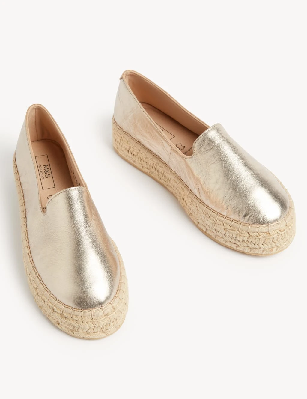 Made from metallic leather, these flatform espadrilles will add a statement touch to warm weather looks. Slip-on design featuring Insolia Flex® technology, which makes walking more comfortable by ensuring optimal foot placement and natural movement. Added antibacterial padding for a fresh feel.