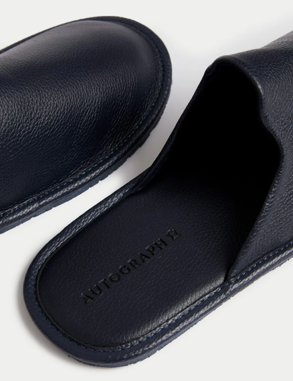 Treat your feet to a touch of luxury with these textured leather slippers. Comfortable slip-on mule style. Complete with Freshfeet™ technology to keep your feet feeling fresh all day long.