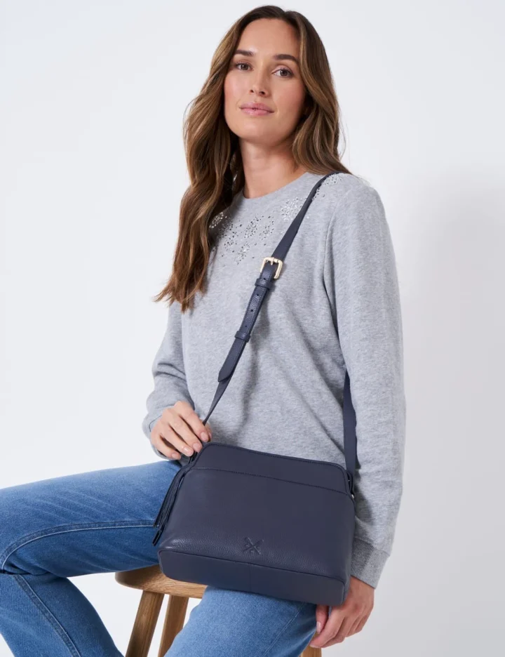 This leather cross body bag from Crew Clothing combines sleek style with practicality. It features two zipped internal compartments plus one with a magnetic fastening, enabling you to keep all your essentials organised. A neat external pocket, an adjustable strap and debossed branding complete the versatile design.