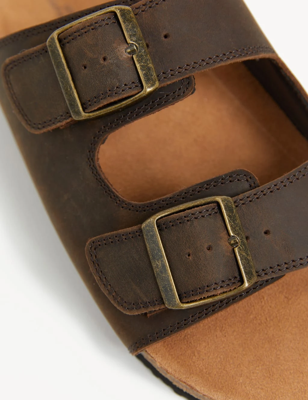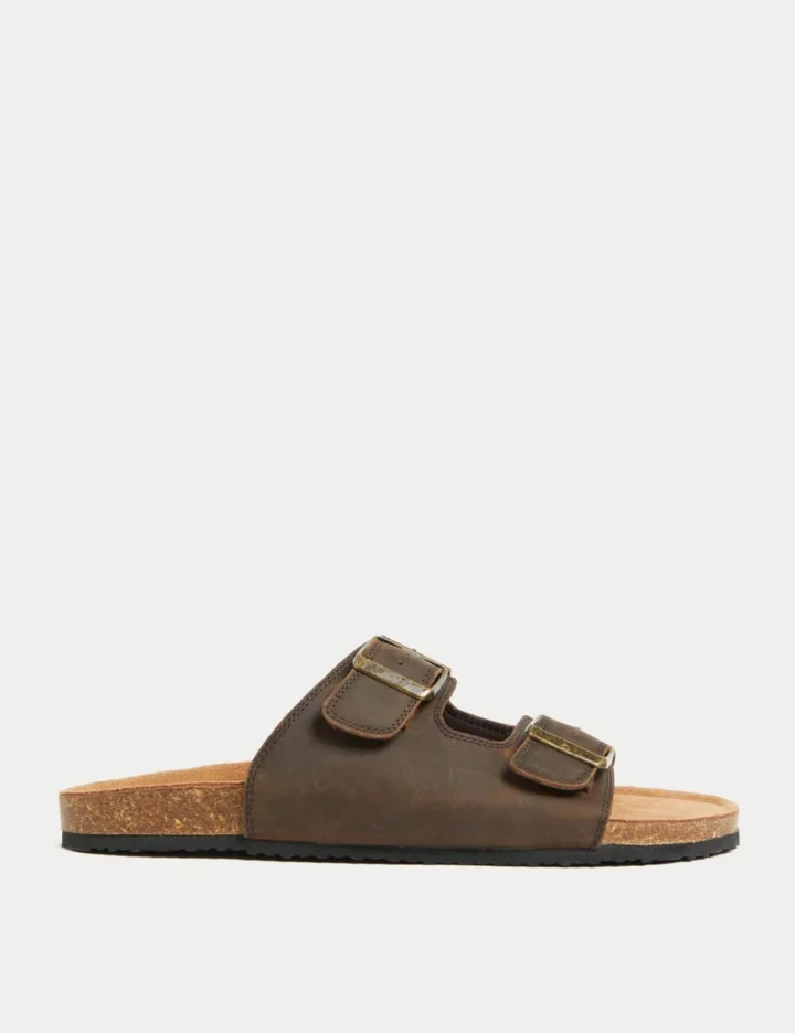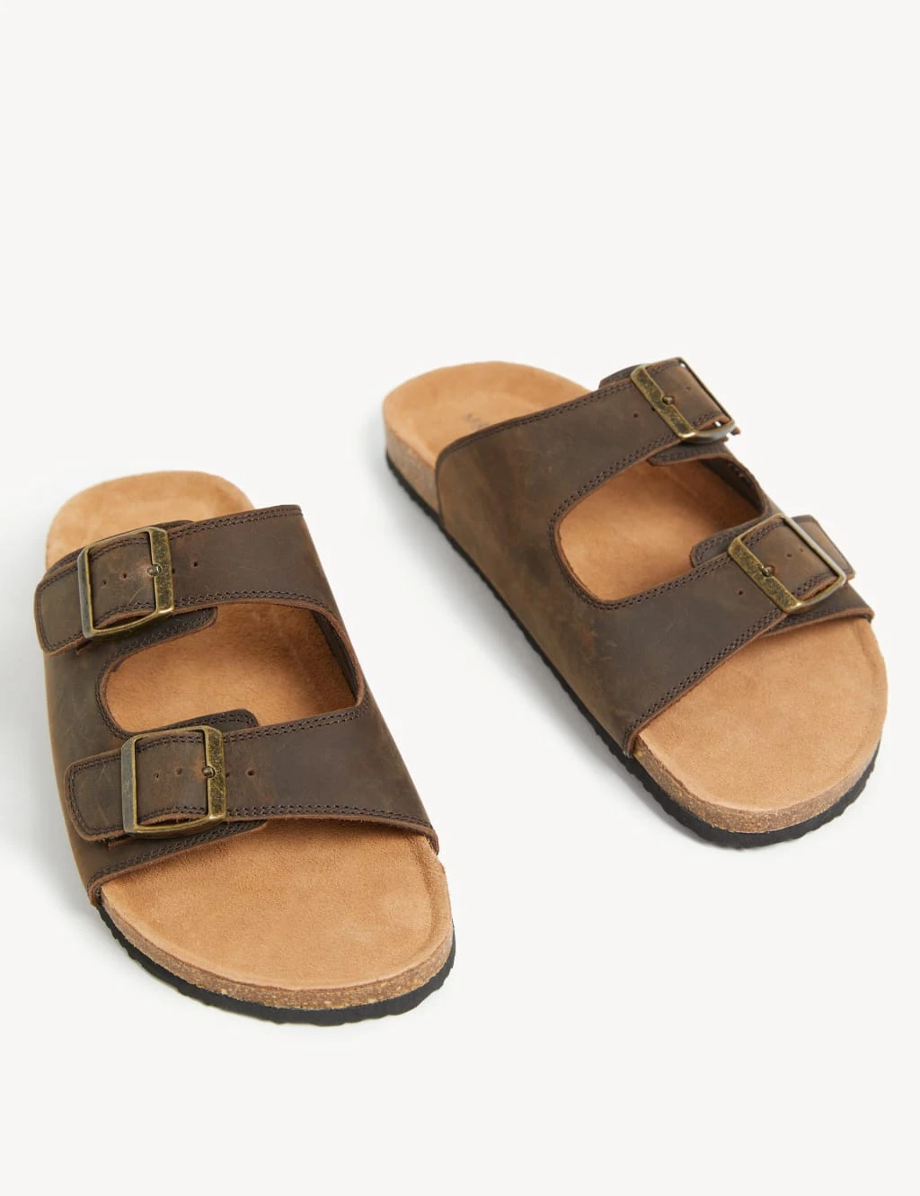 Combining practicality with understated style, these leather sandals are perfect for warm weather outings. Cork bed soles are springy for comfort and the underlying grips help to prevent slipping. Buckle fastenings help you find the perfect fit. M&S Collection: easy-to-wear wardrobe staples that combine classic and contemporary styles.