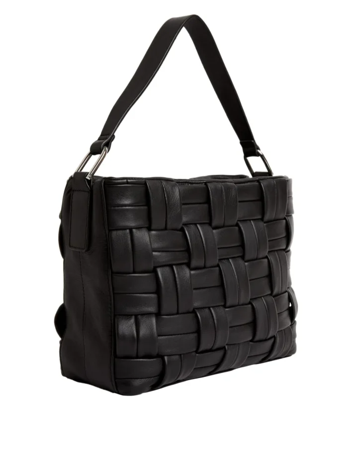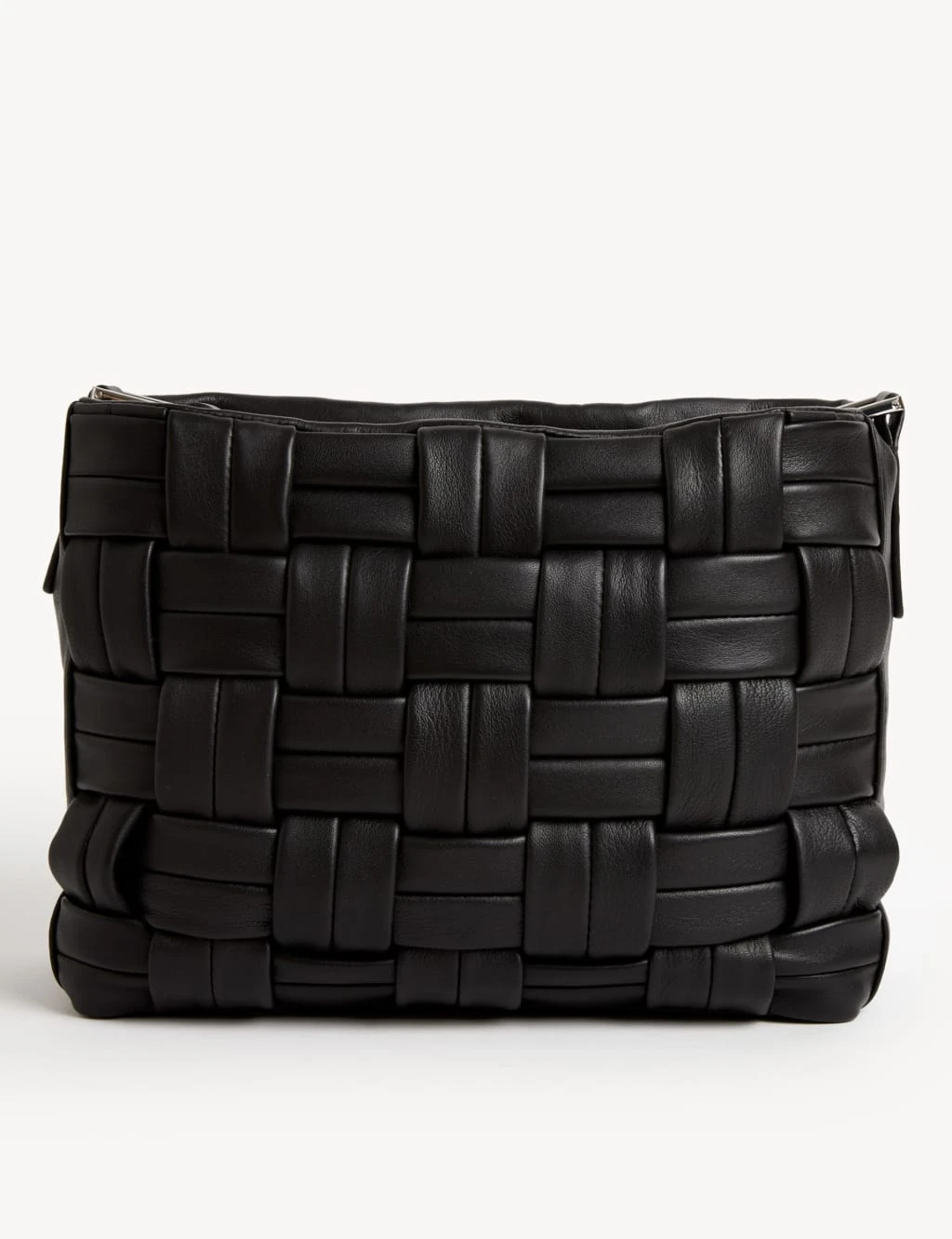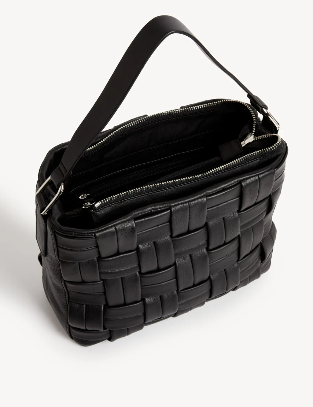 Add a sophisticated touch to any outfit with this leather bag, featuring a stylish woven design. Secure zip fastening. Lined interior features two compartments – one with a zip – and a slip compartment so you can keep all your belongings organised. A top carry handle and a detachable cross-body strap give you versatile styling options.