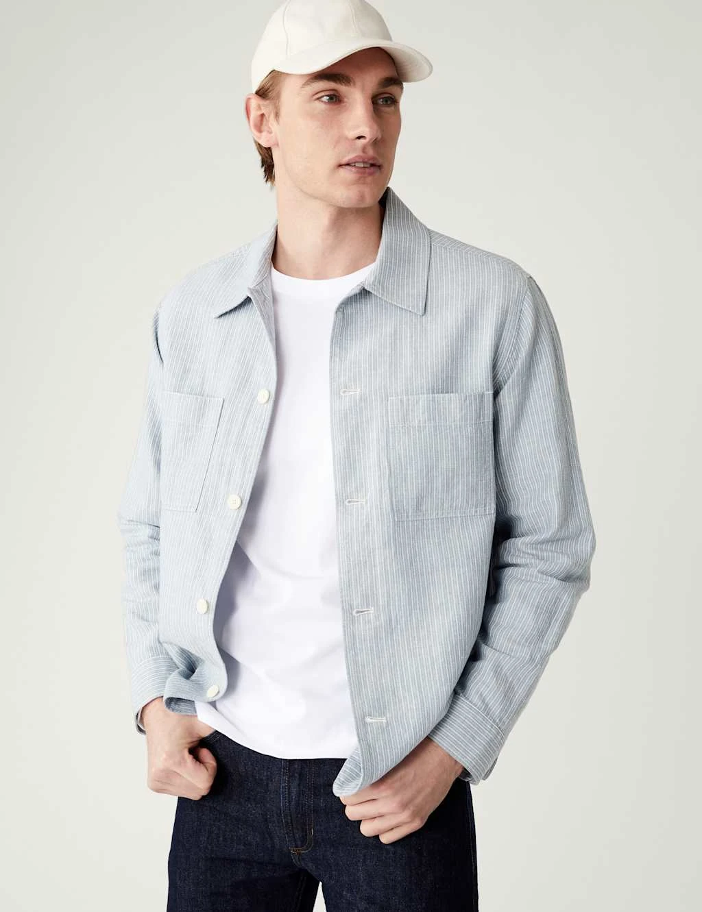 Linen Blend Striped Overshirt