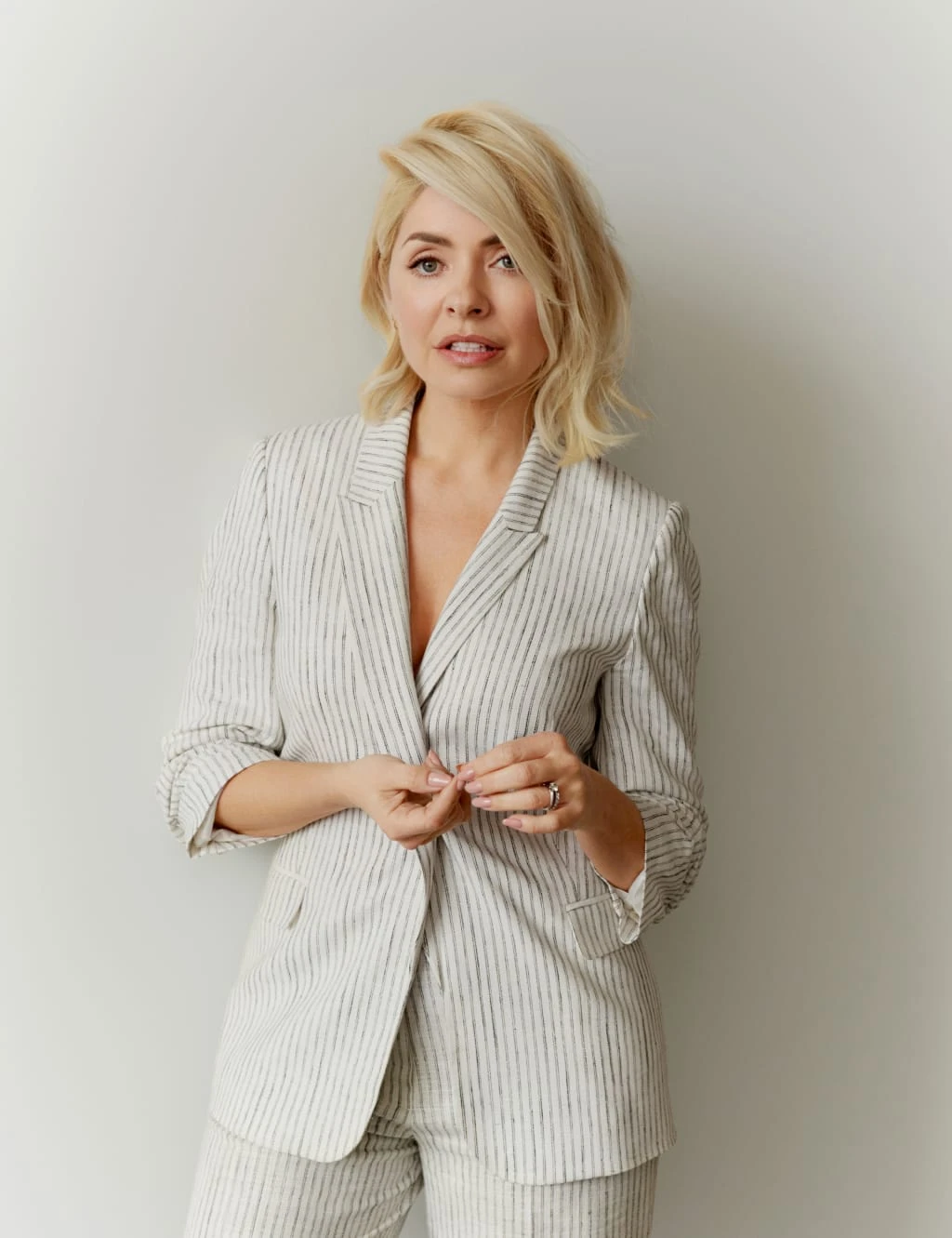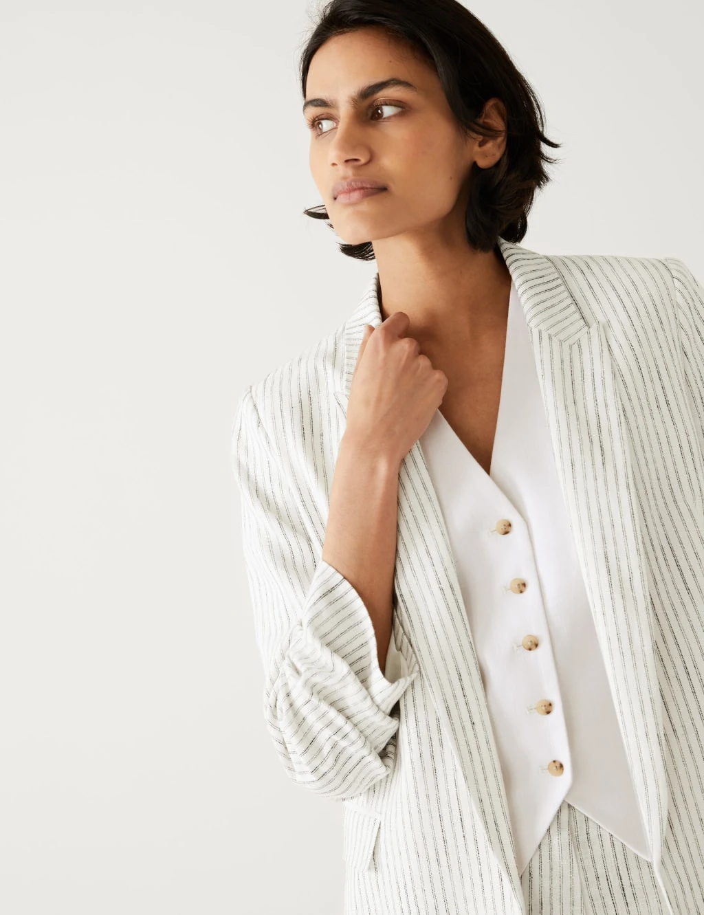 Give your smart look a laid-back edge in this linen-blend striped blazer. Designed in a roomy relaxed fit, with ruched sleeves for a casual, pushed-up effect. This piece is fully lined for comfort and features two outer slip pockets for your essentials.