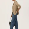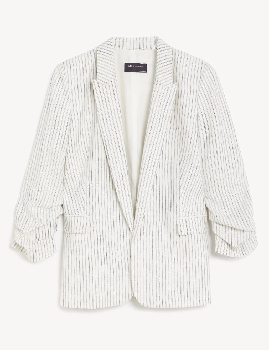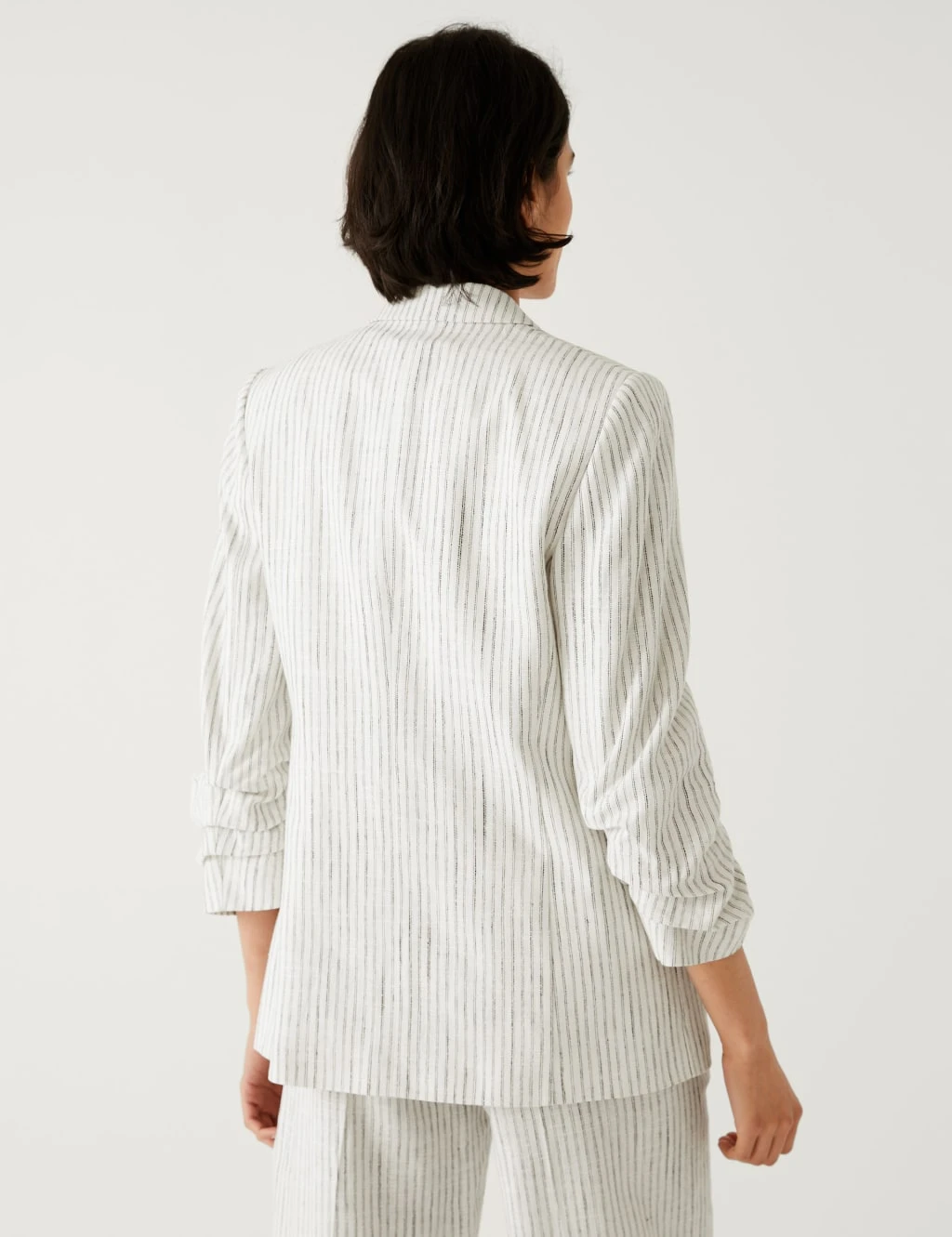 Linen Blend Striped Ruched Sleeve Blazer