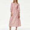 Linen Rich Floral V-Neck Midi Wrap Dress