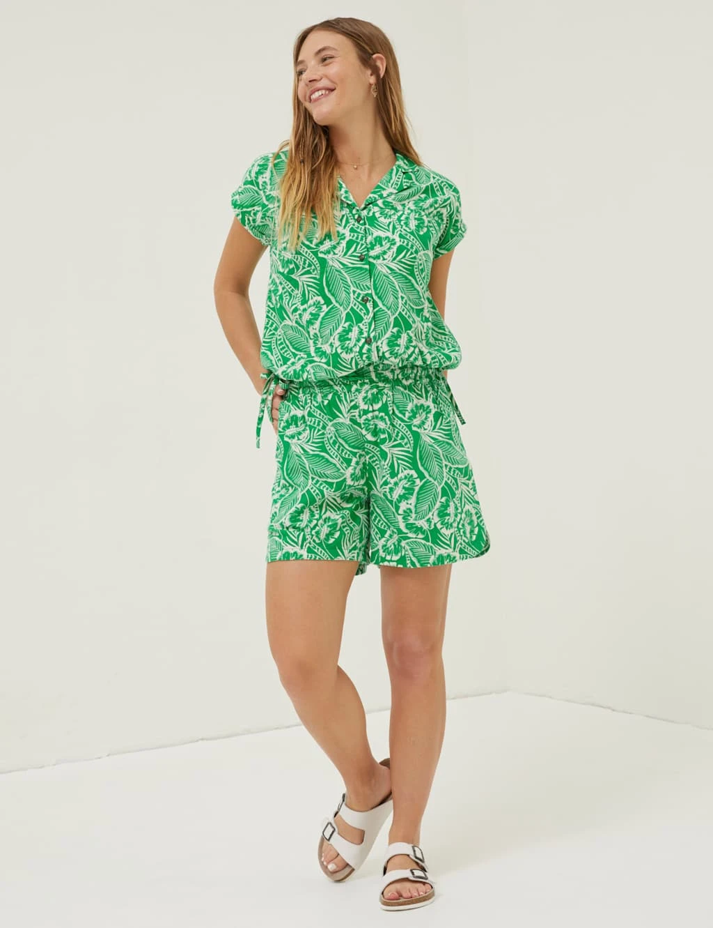 If you love a bold print, pull on this linen-rich leaf shirt from FatFace. It’s cut in a comfortable regular fit, with airy short sleeves that finish in turned-up cuffs for a casual look. Classic shirt features include a smart revere collar and button front. Ties at the hem and chest pockets add the final finishing touches.
