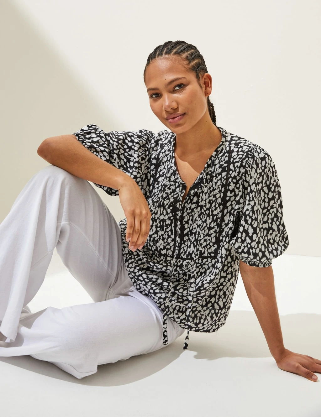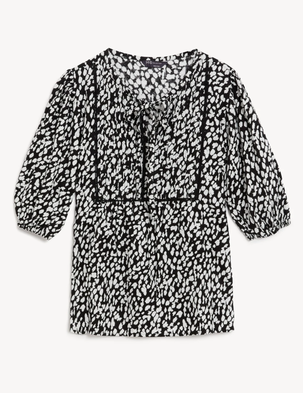 Lace inserts and stitched pleats create an elegant bib effect on this linen-rich printed blouse. It’s cut to a regular fit, with short puff sleeves for an airy feel. The neckline features a coordinating tie fastening. M&S Collection: easy-to-wear wardrobe staples that combine classic and contemporary styles.