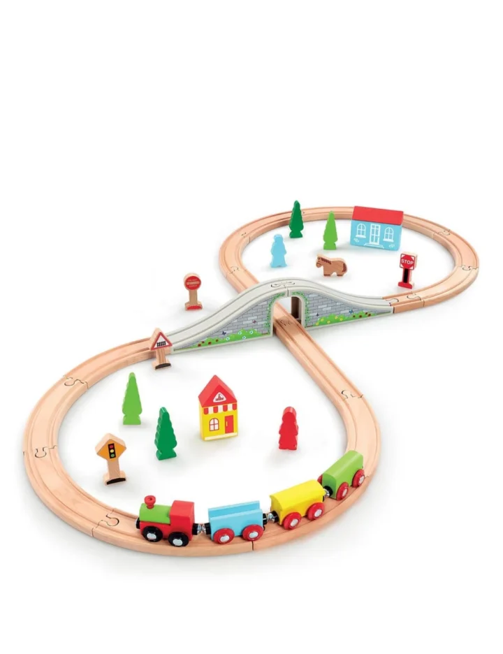 Encourage imaginative play with this interactive Little Town Train Set from Early Learning Centre. Children can build the wooden figure of eight track and send the train on its way around the town. This 30-piece set includes signposts, trees, people and shops. Suitable for children over 3 years.