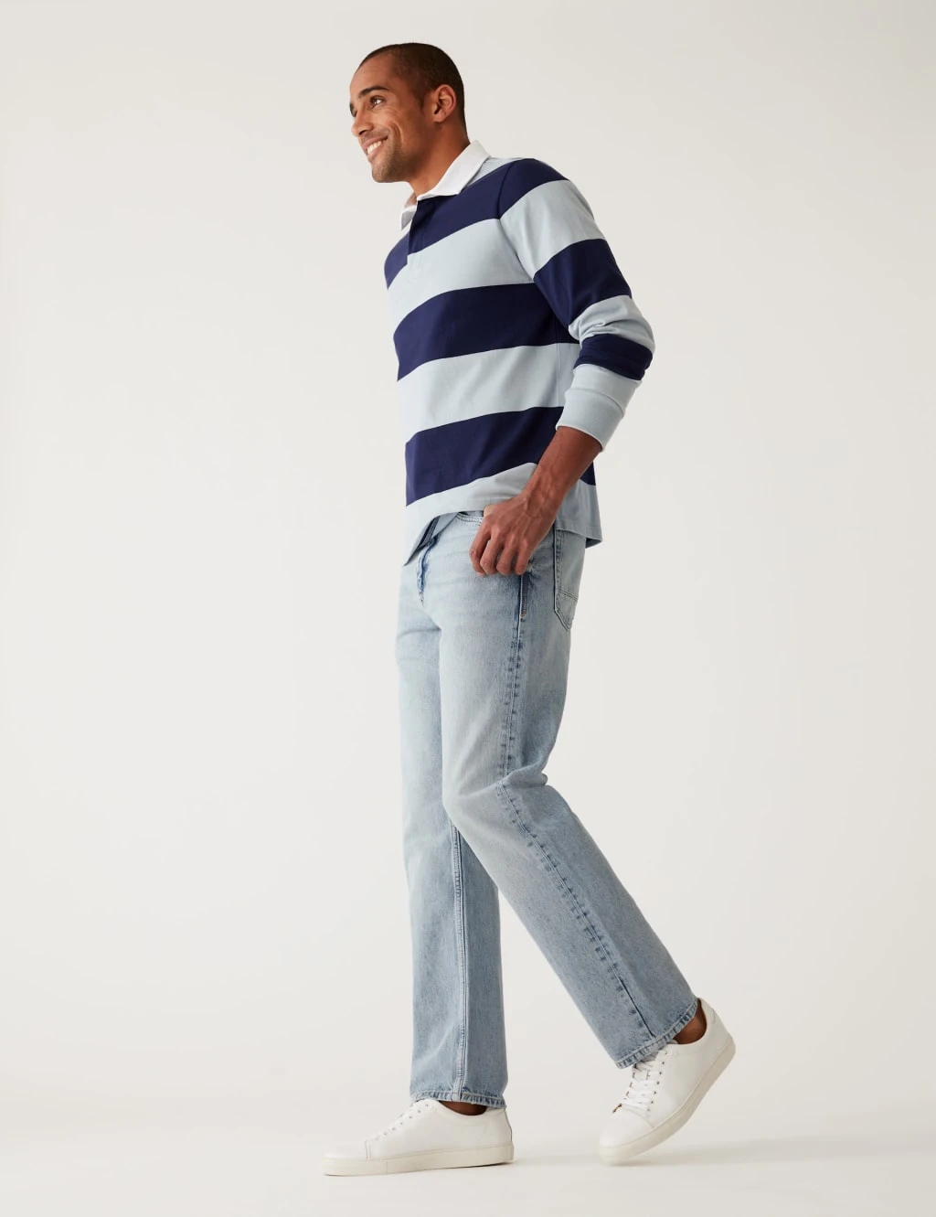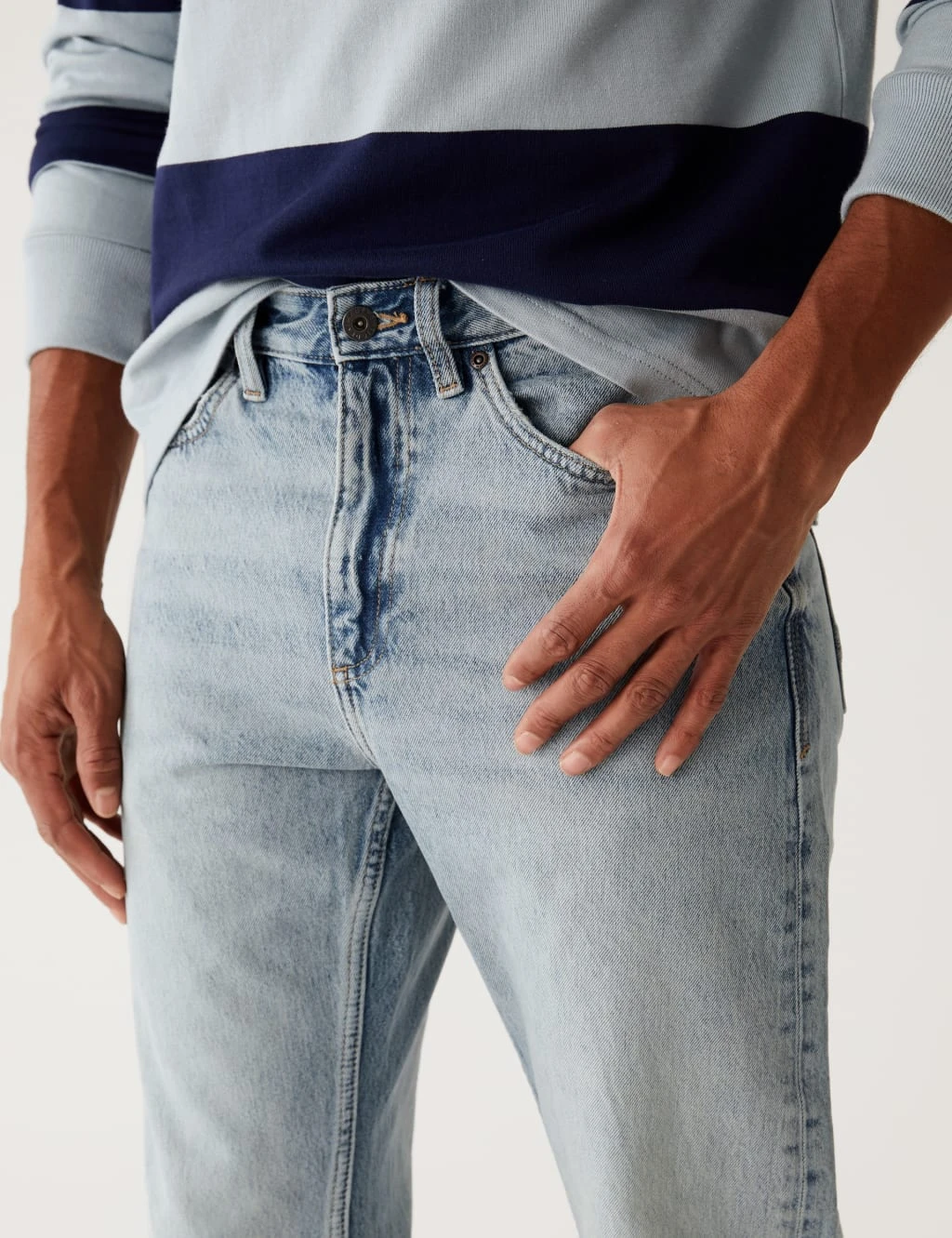 A soft vintage wash gives these pure recycled cotton denim jeans a casual look. Loose fit, with a rigid fabric for a touch of extra structure. A button and zip fastening ensures a traditional air while turn-up cuffs add a neat finish. All M&S denim is made with responsibly sourced cotton and less water.