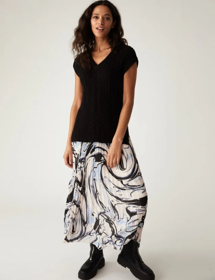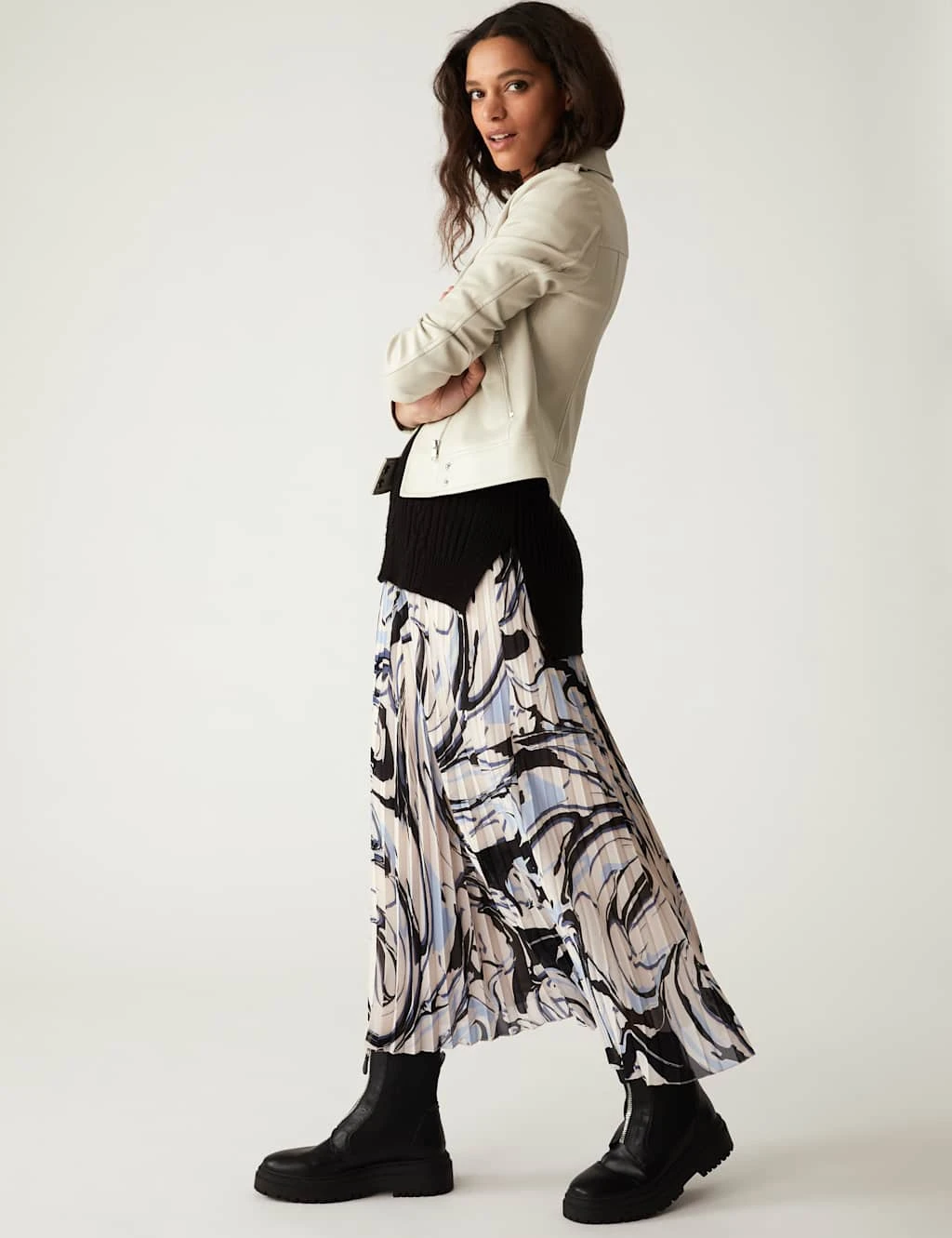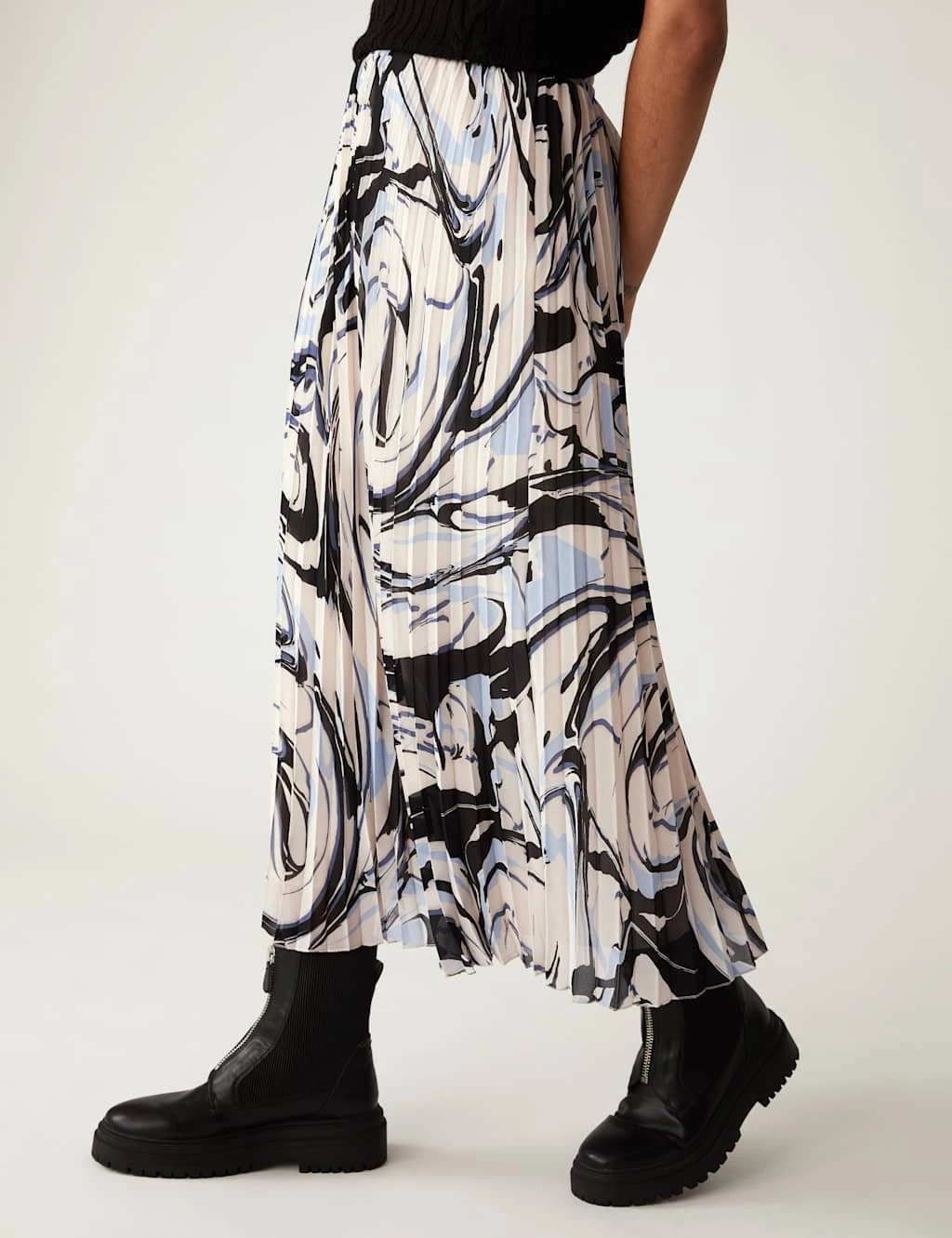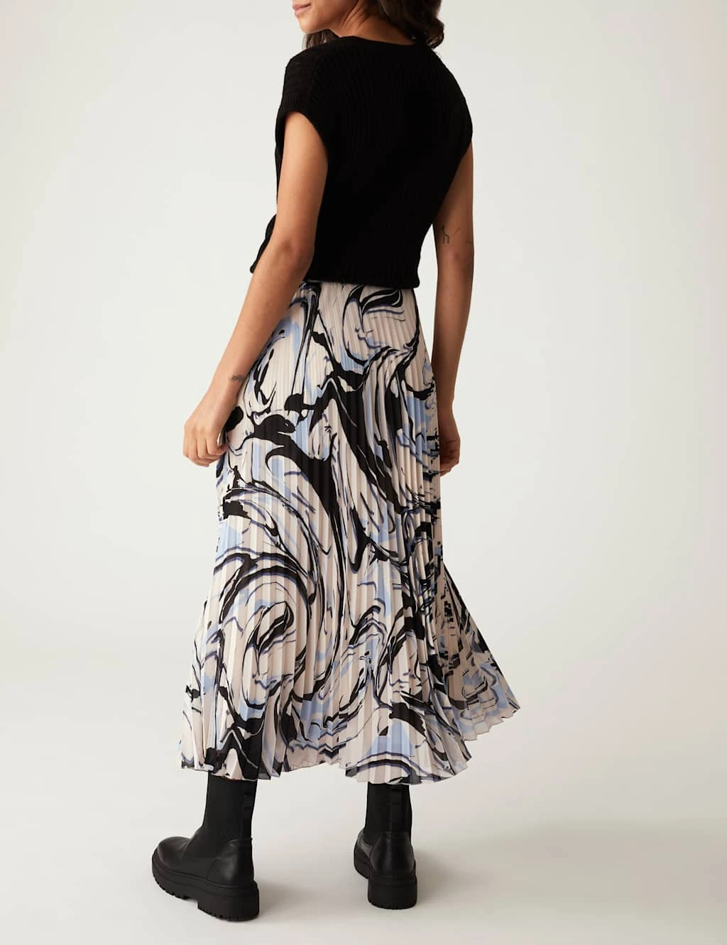 Modern and sophisticated, this midaxi skirt is an absolute must for your wardrobe. It’s made to a comfortable regular fit with a flattering elasticated waist. The skirt falls in a series of beautiful pleats that bring the contemporary marble print to life as you move.