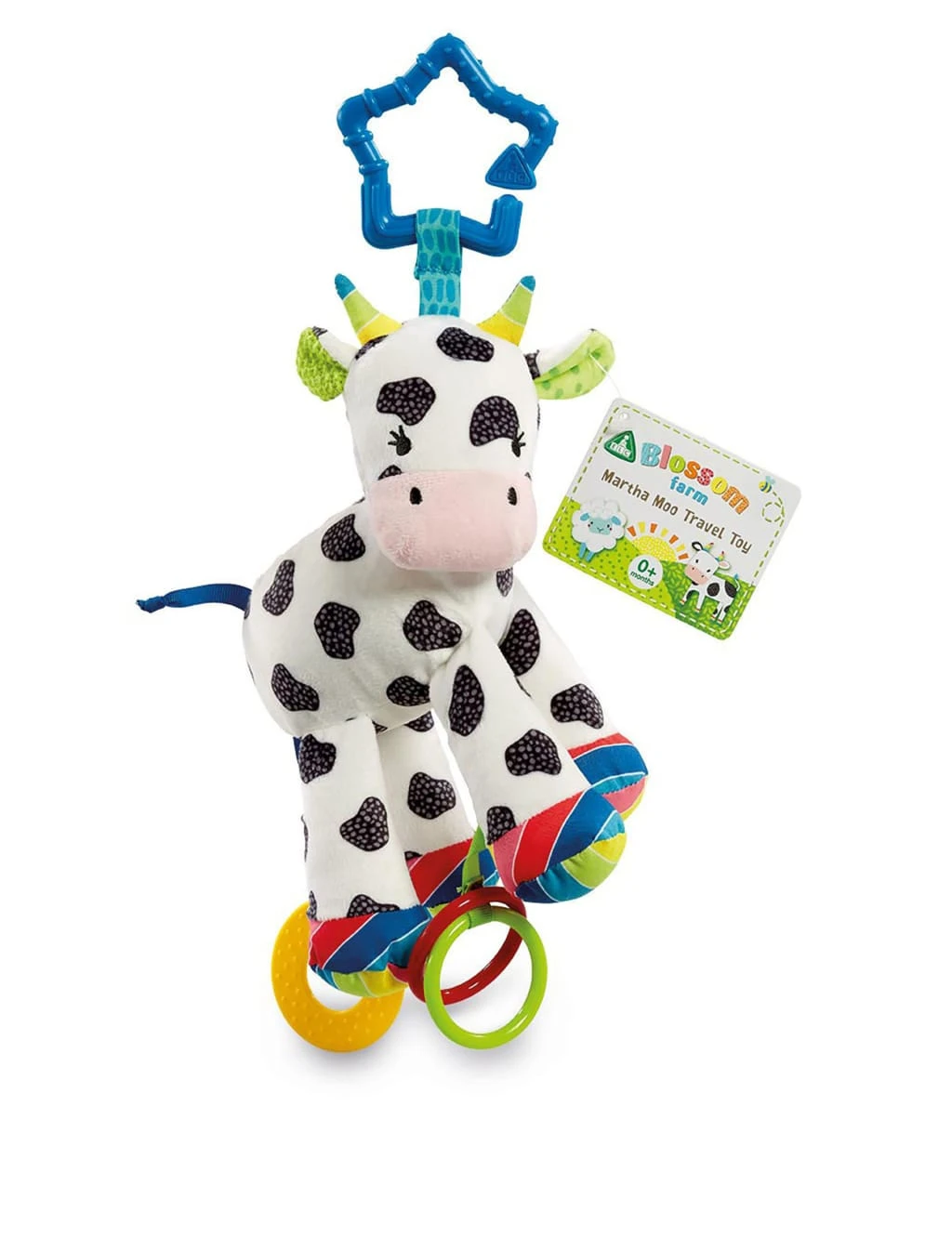 Keep your little one entertained while on the go with the Martha Moo Travel Toy from Early Learning Centre. The brightly coloured cow is designed to clip onto the side of pushchairs or car seats and features different textures and sounds for children to explore. It has a textured C-clip which they can chew on when teething. Suitable from birth.