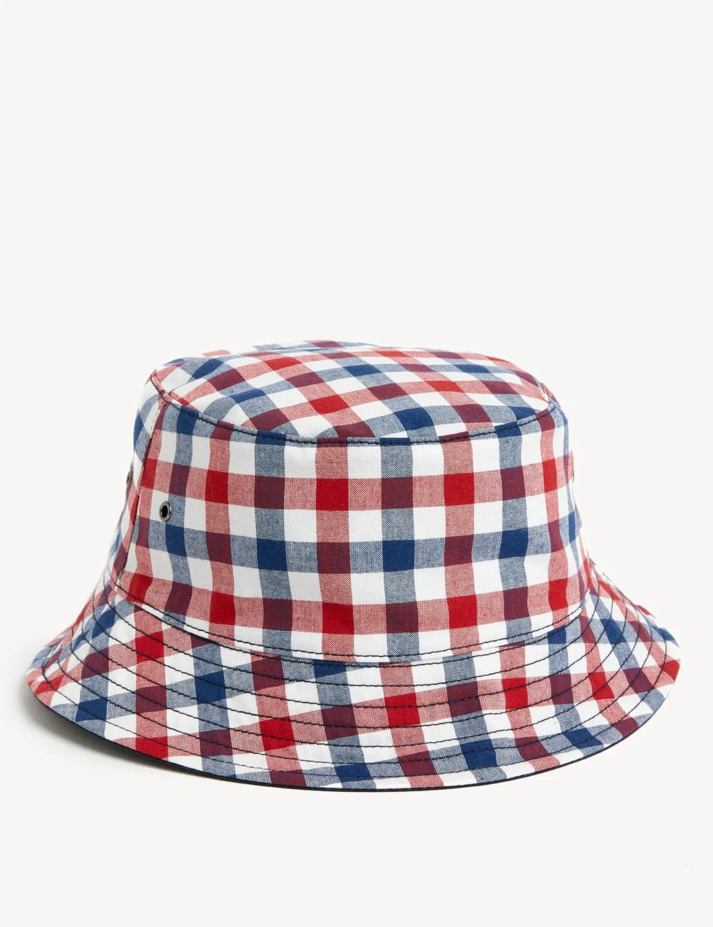 Enjoy Summer in style with this pure cotton red, white and blue checked bucket hat. It’s reversible to give you the option of a plain navy hat. UPF50+ helps protect you from harmful UV rays. M&S Collection: easy-to-wear wardrobe staples that combine classic and contemporary styles.