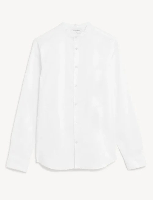 Slim Fit Cotton Stretch Grandad Collar Shirt