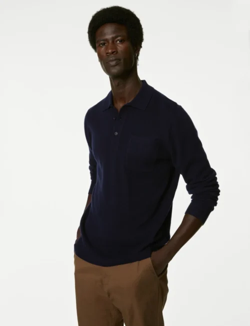 Pure Extra Fine Merino Wool Knitted Polo Shirt