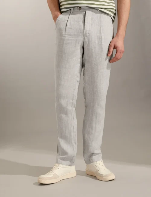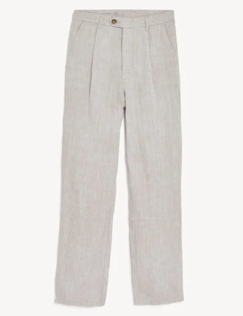 Jaeger Tapered Fit Pure Linen Single Pleat Trousers