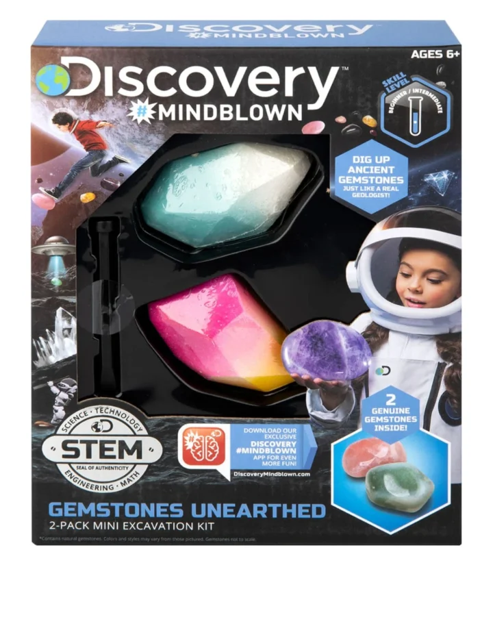 Mini geologists will love this toy excavation kit from Discovery #Mindblown. They can dig up two real gemstones like a professional, using the included tool. This fun, interactive game encourages learning and increases kids’ imagination. Suitable for children over 6 years.