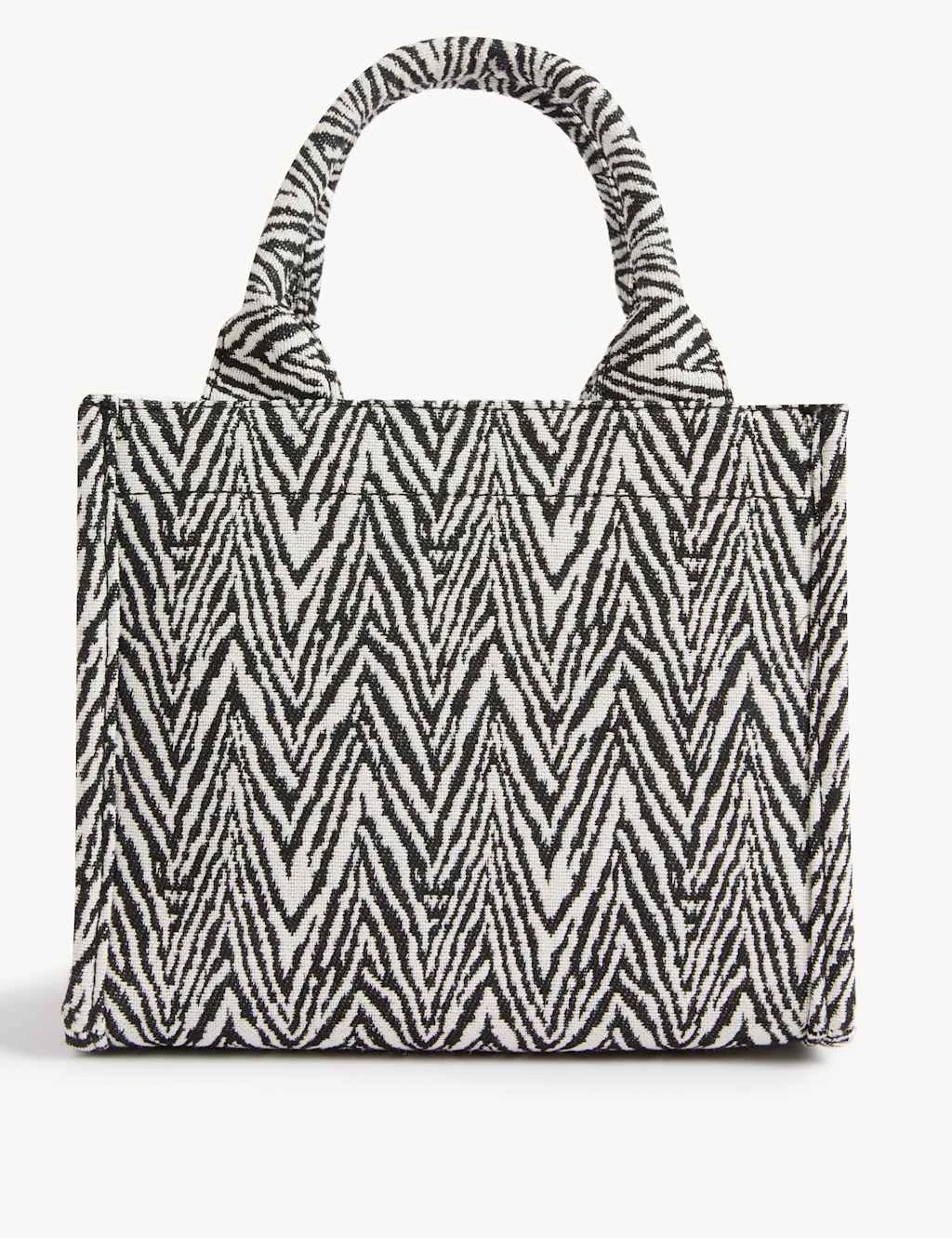 A bold print makes this grab bag an eye-catching accessory. Magnetic closure, with internal zip and slip pockets to keep smaller items secure. A detachable webbing strap lets you carry it your way.
