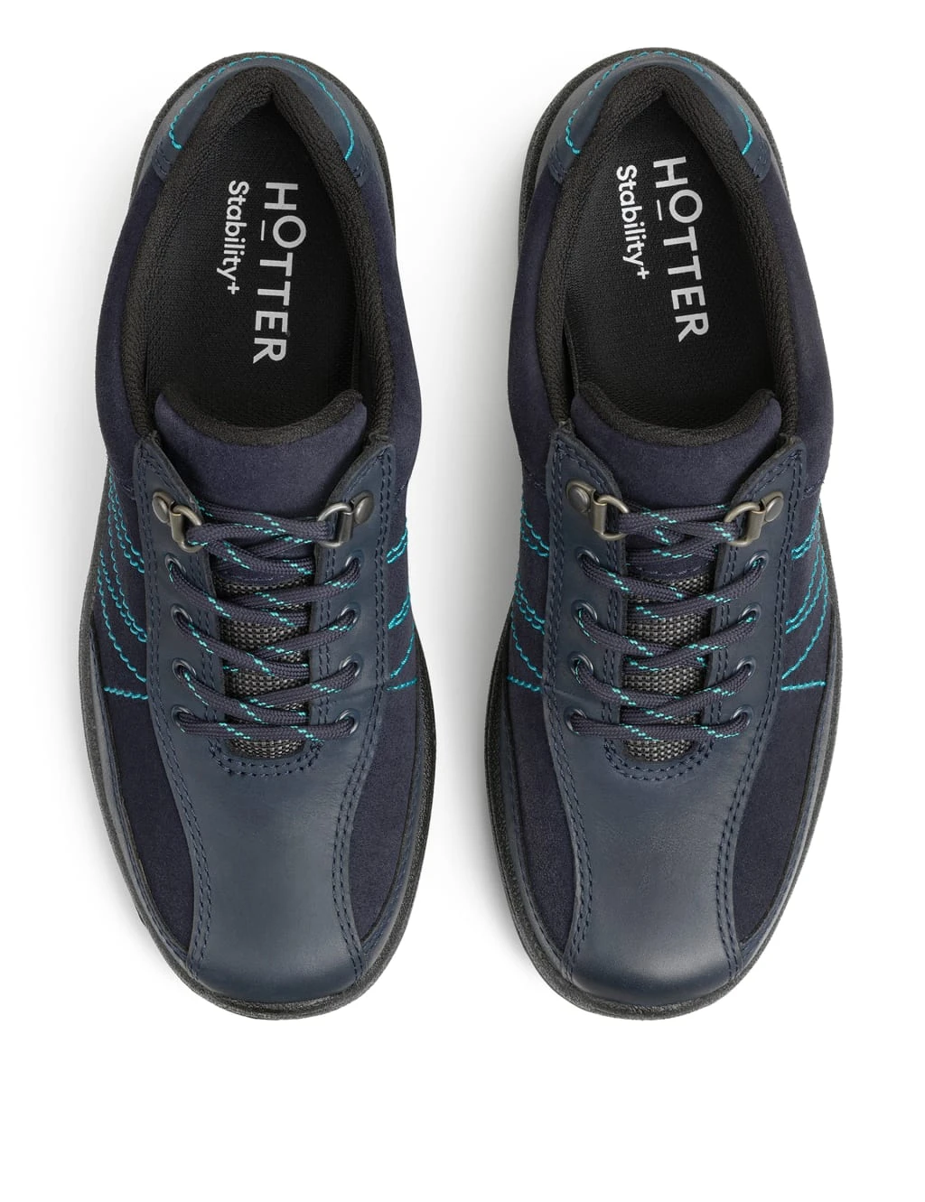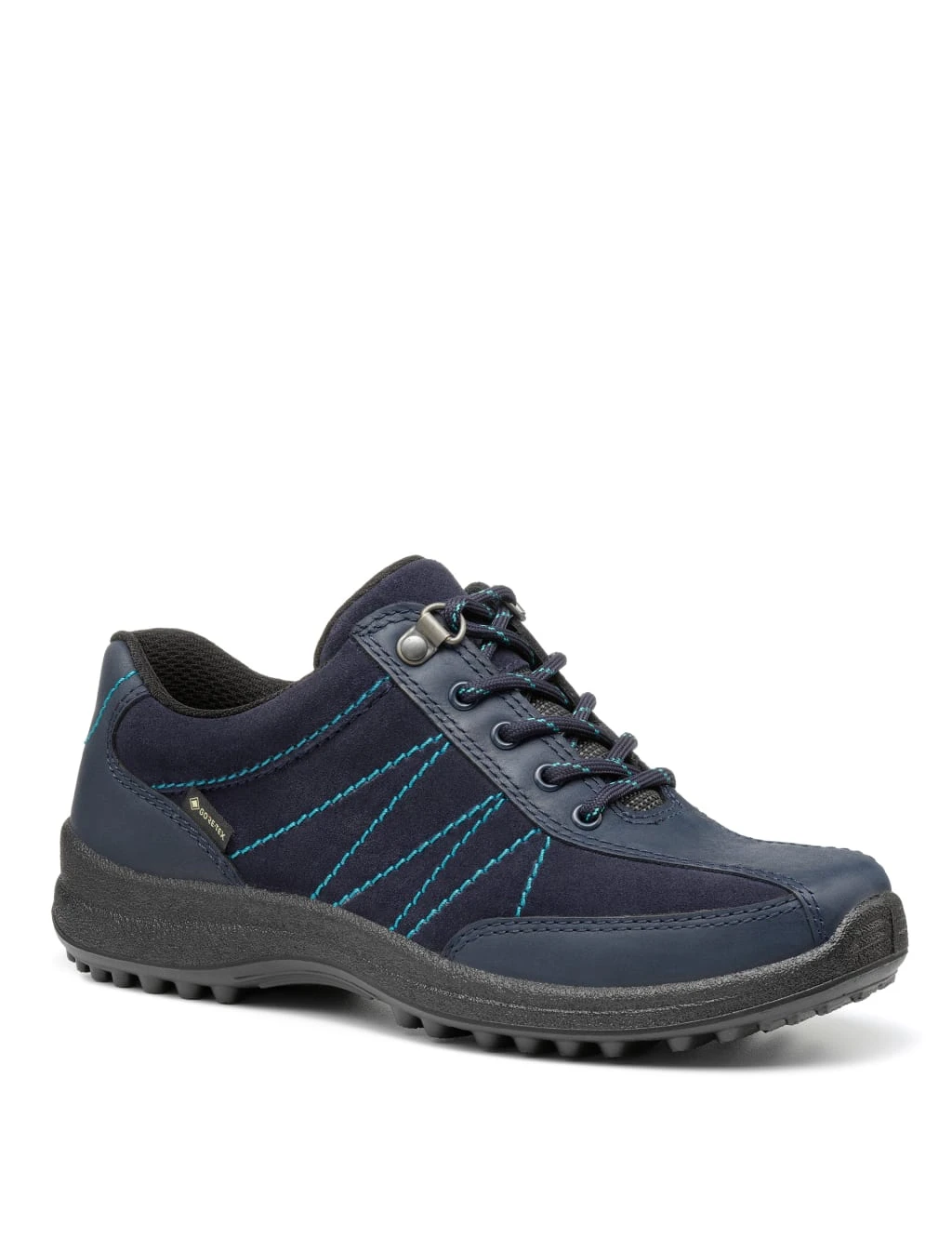 Tackle adventurous days in style and comfort with these suede walking shoes from Hotter. They’re designed in a classic regular fit with an easy lace-up fastening. Patented GORE-TEX® technology keeps water out while allowing moisture to escape, to keep your feet cool, dry and comfortable, while contrast stitching on the sides adds a pop of colour.