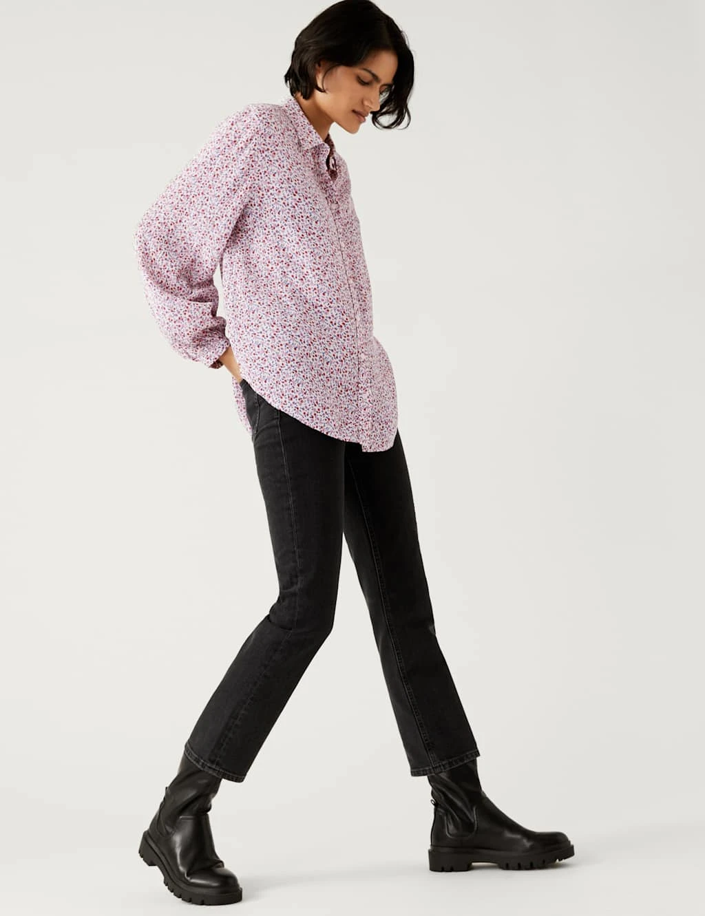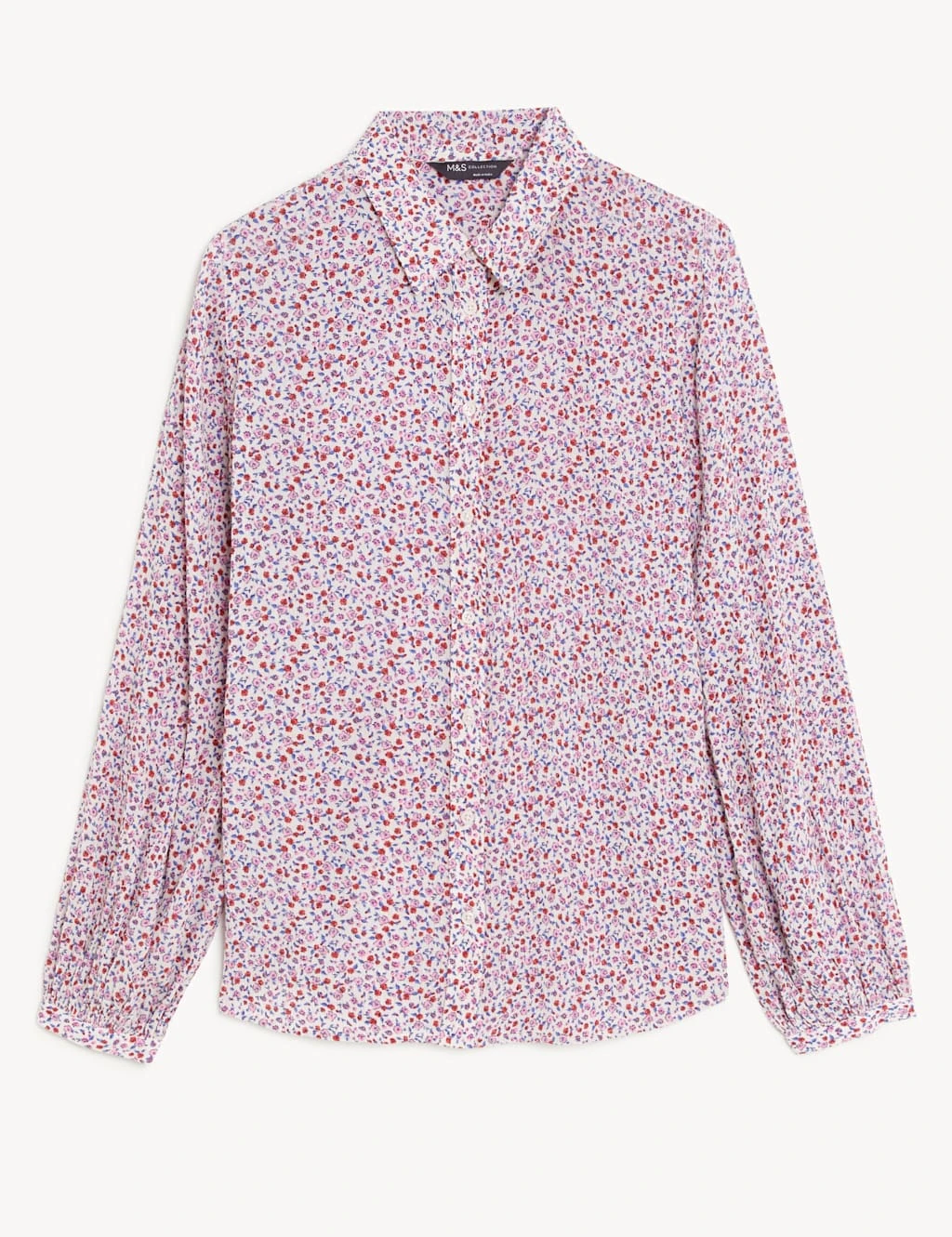Add a feminine touch to your smart ensemble with this printed modal-blend shirt. This longline piece has an effortless relaxed fit with a smart collared neck. Its long sleeves feature gentle gathering for a flattering shape, while a classic button fastening completes the look.