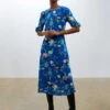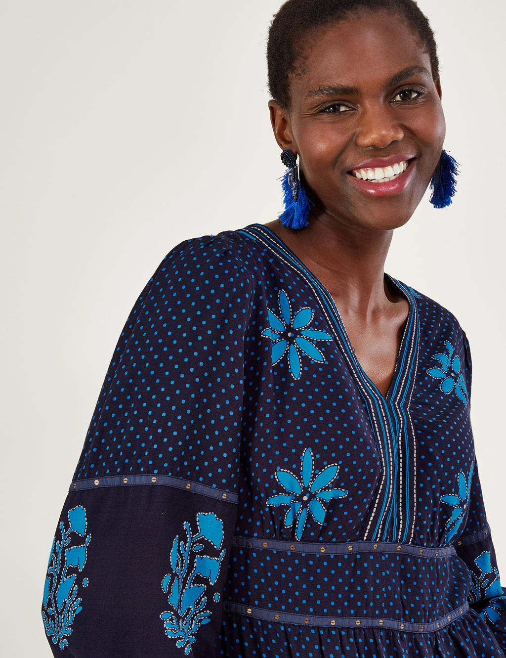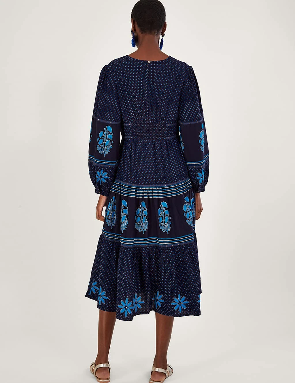 MONSOON Printed Embroidered V-Neck Midi Dress