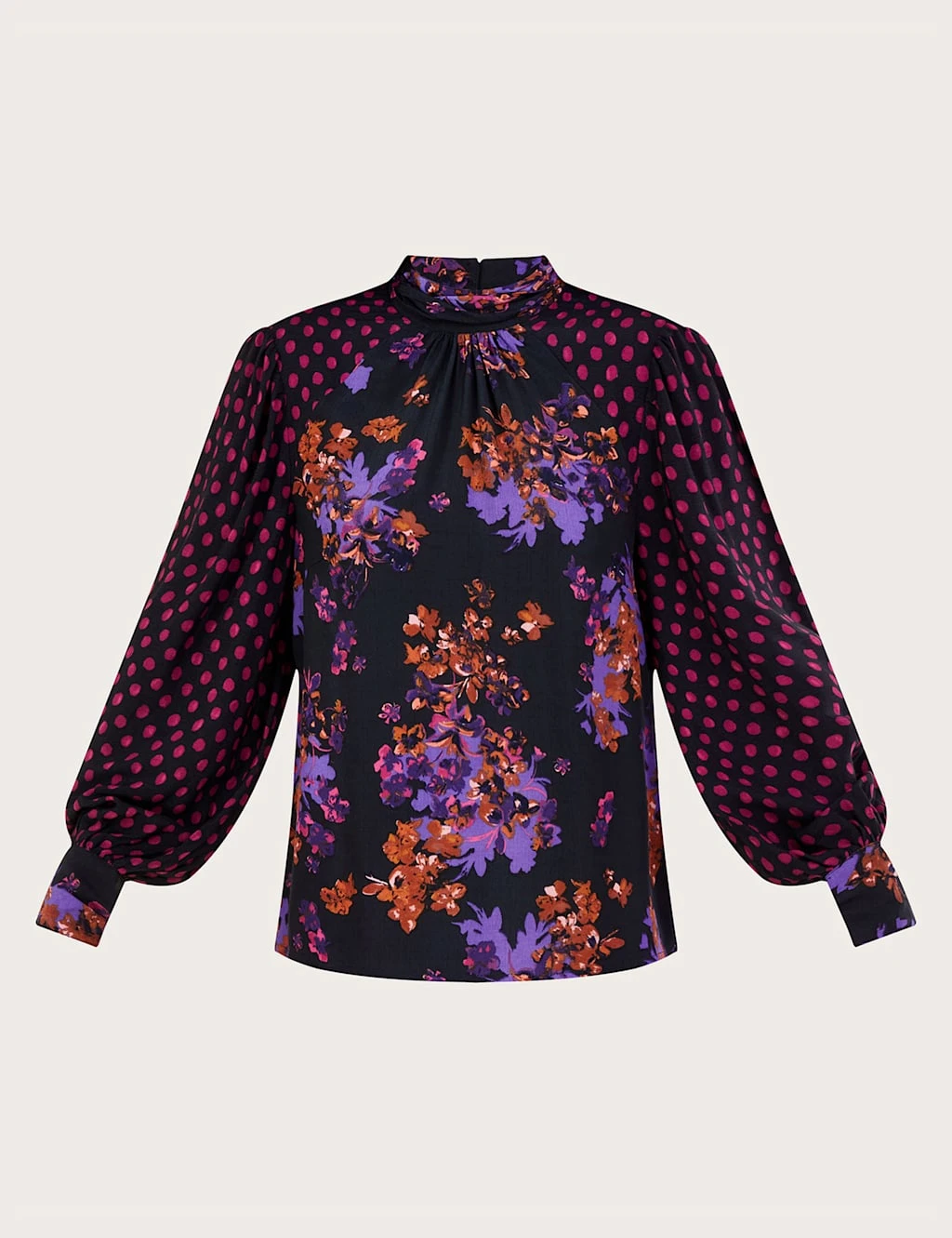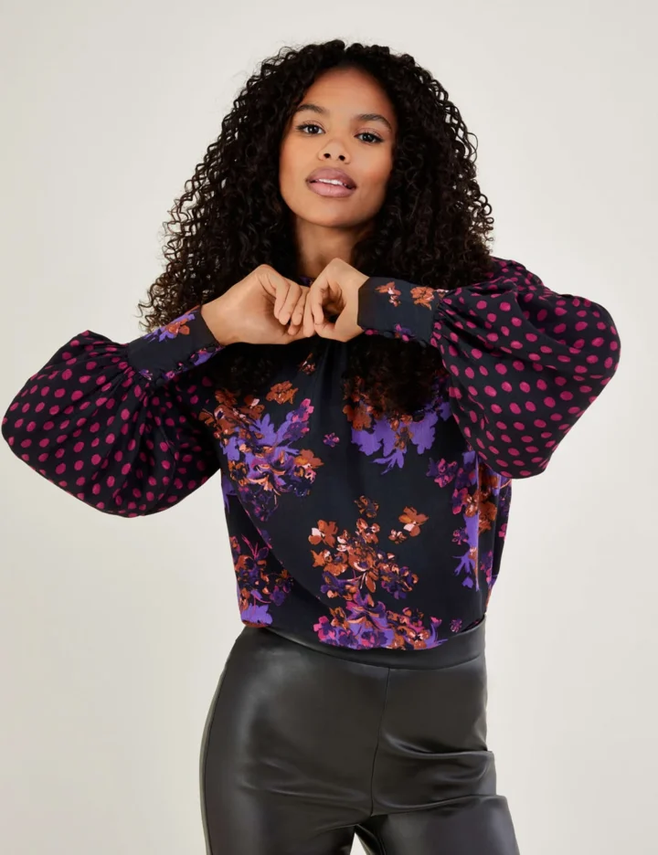 MONSOON Printed High Neck Blouson Sleeve Blouse