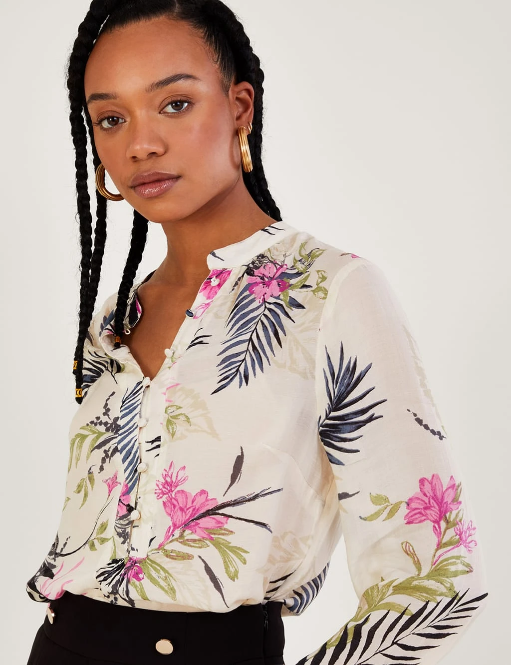 Bring a splash of sunshine to your wardrobe with this playful printed blouse by Monsoon. It’s crafted in a regular fit, with a v-neck and long sleeves for a neat look. The front features a covered button placket for feminine detail.
