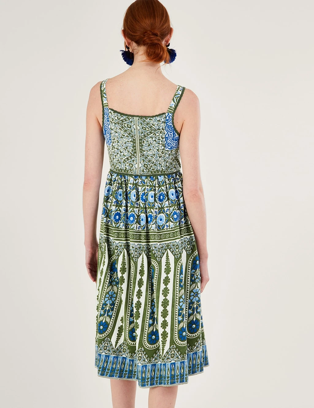MONSOON Pure Cotton Printed Midi Swing Dress
