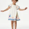 This adorable dress from Monsoon is the ideal party piece, perfect for little bridesmaids. It’s designed in a comfortable regular fit, with short puff sleeves, an easy round neck and a concealed zip at the back. A fitted bodice sits atop a full tulle skirt that’s perfect for swishing in. The back is adorned with a big, beautiful bow.