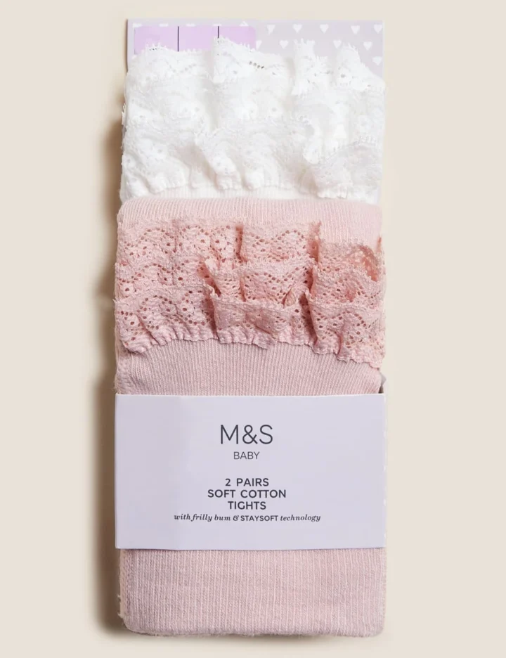 Frill detail at the back brings the cute factor to these cosy cotton-rich tights. We’ve added our Stay Soft finish for long-lasting softness. Handy two-pack. We only ever use responsibly sourced cotton for our clothes.